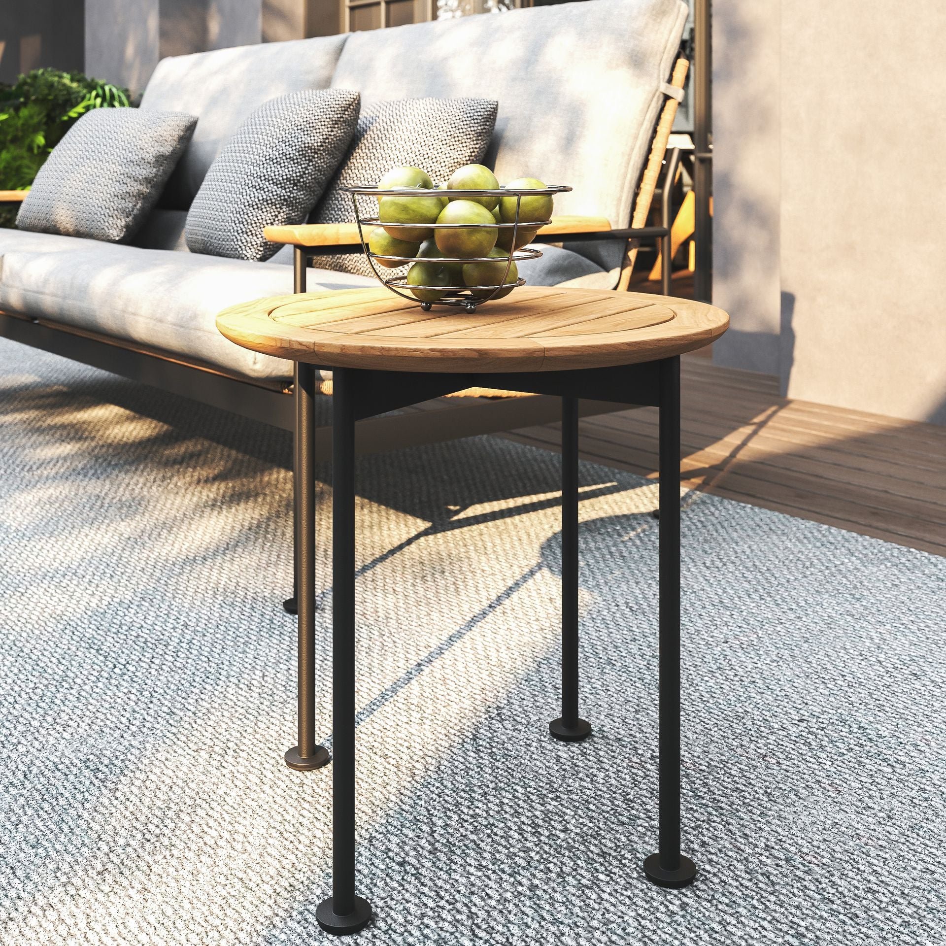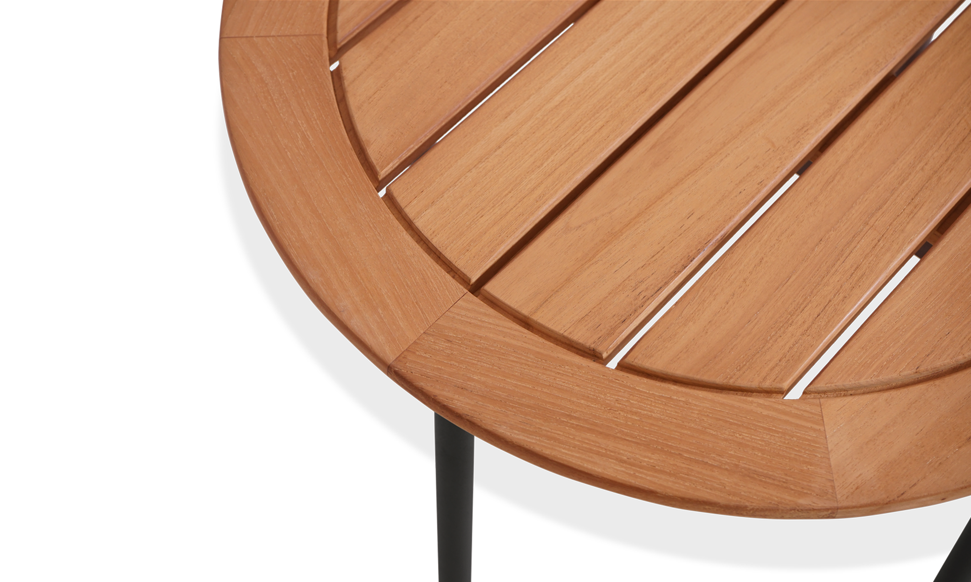 The solid teak top brings warmth and texture, while the slim powder-coated stainless steel base keeps things light and elegant. Weatherproof, rust-resistant and low-maintenance, it’s the kind of table that always knows where to fit in without making a fuss.