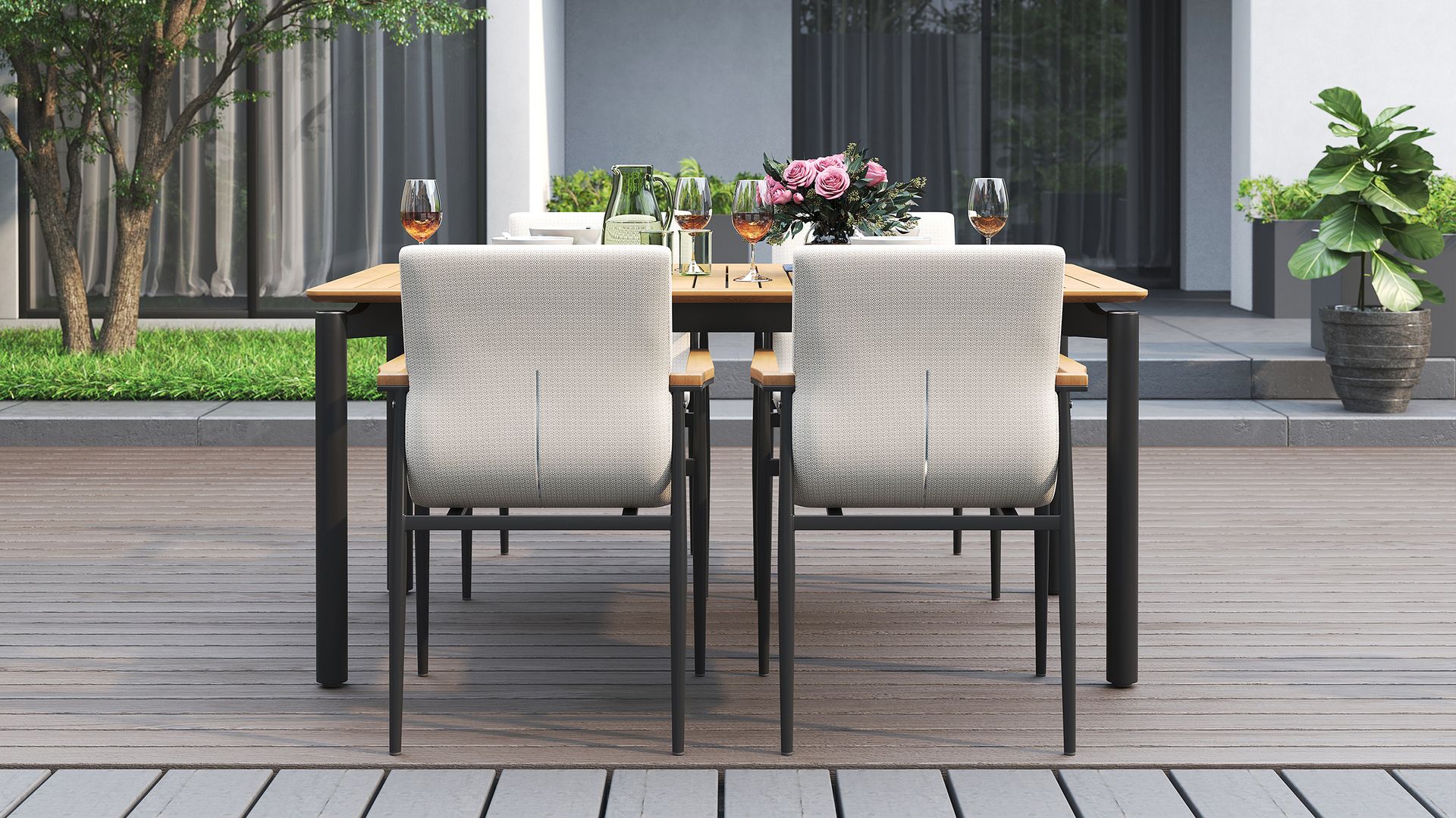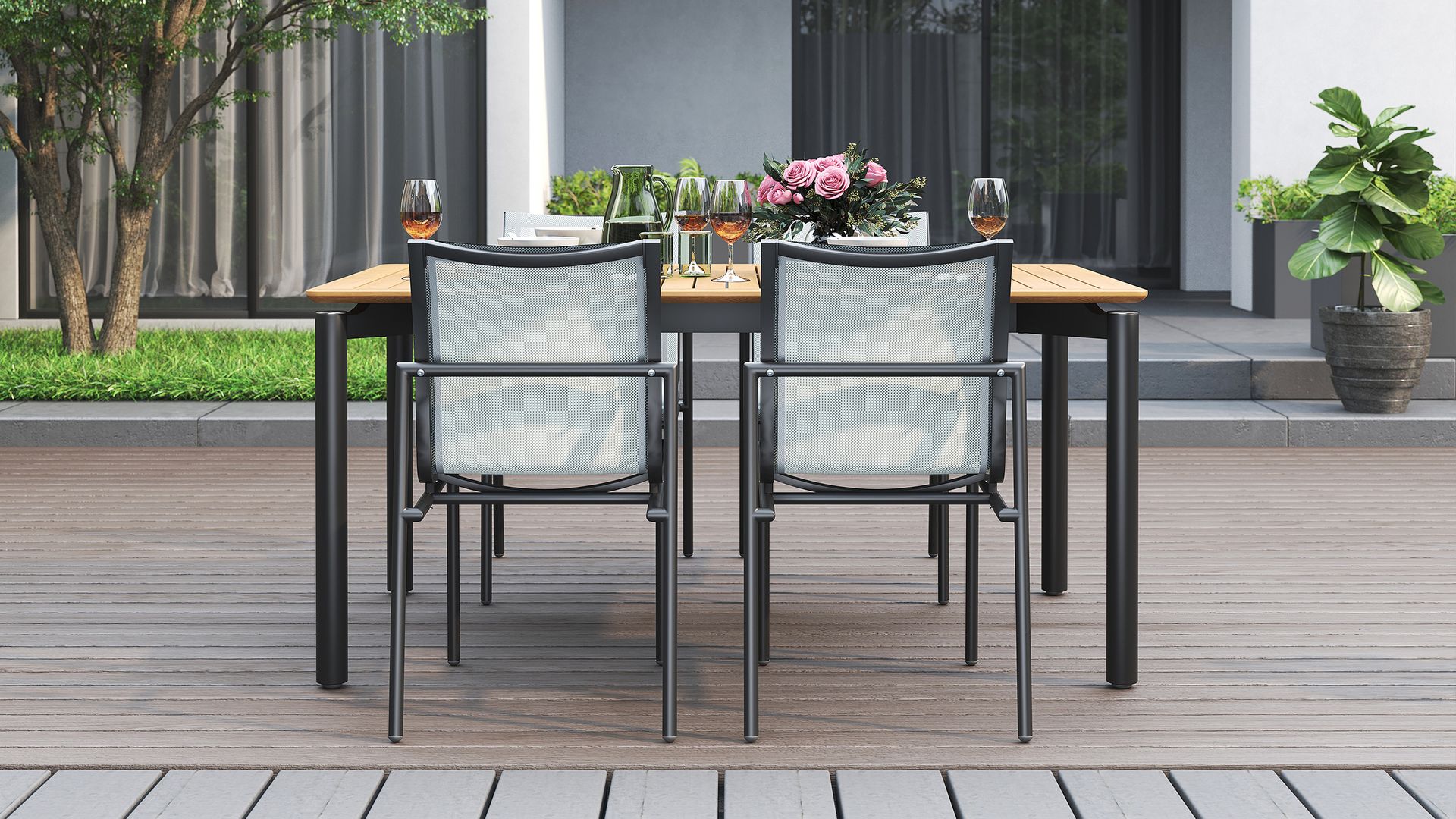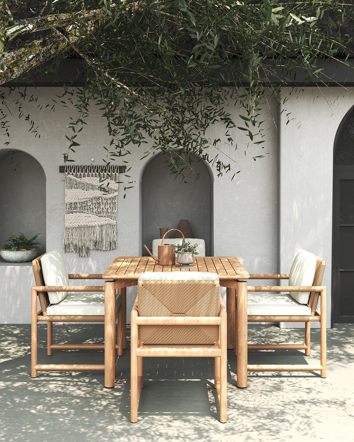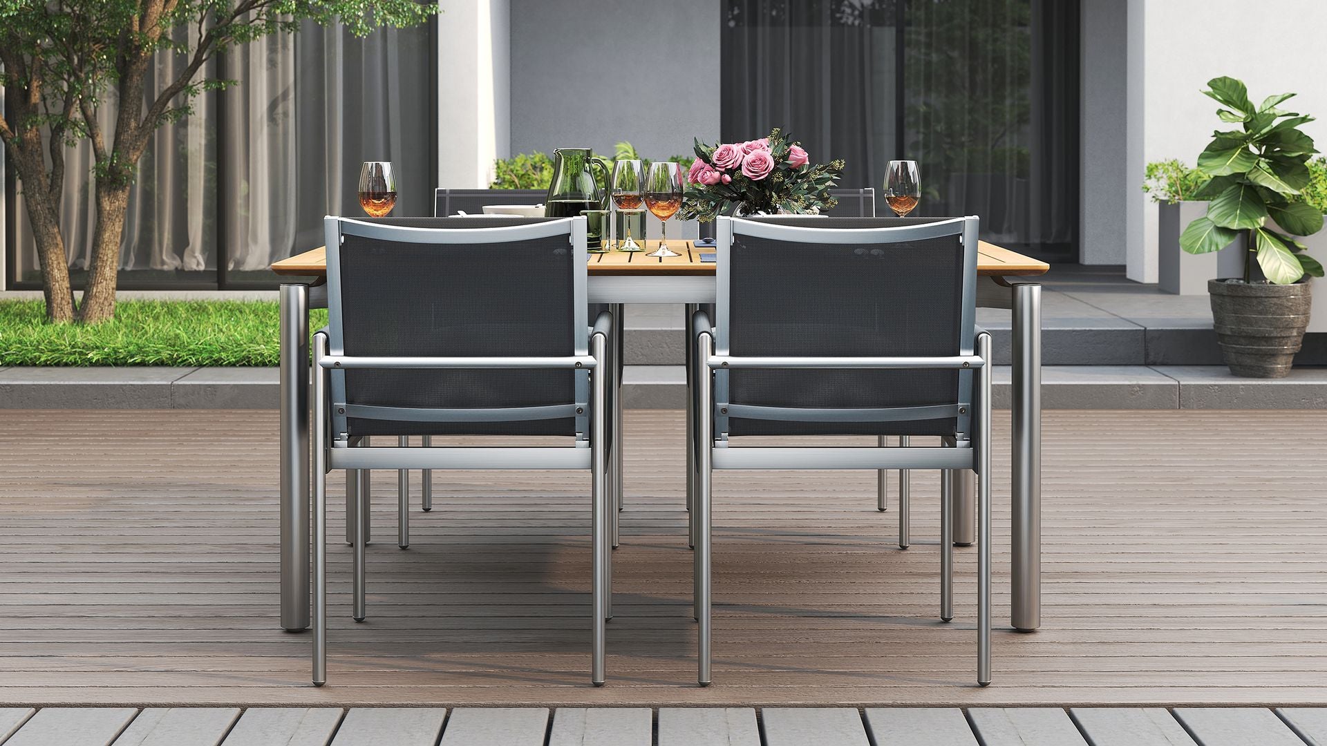 It comes in three sizes to suit your setup: a square 1 metre option, a 1.6 metre rectangle and a generous 2.4 metre length for when the guest list keeps growing. Each version is 1 metre wide, giving everyone a bit of breathing room. Choose from three leg options, including powder-coated aluminium, powder-coated stainless steel or solid teak.