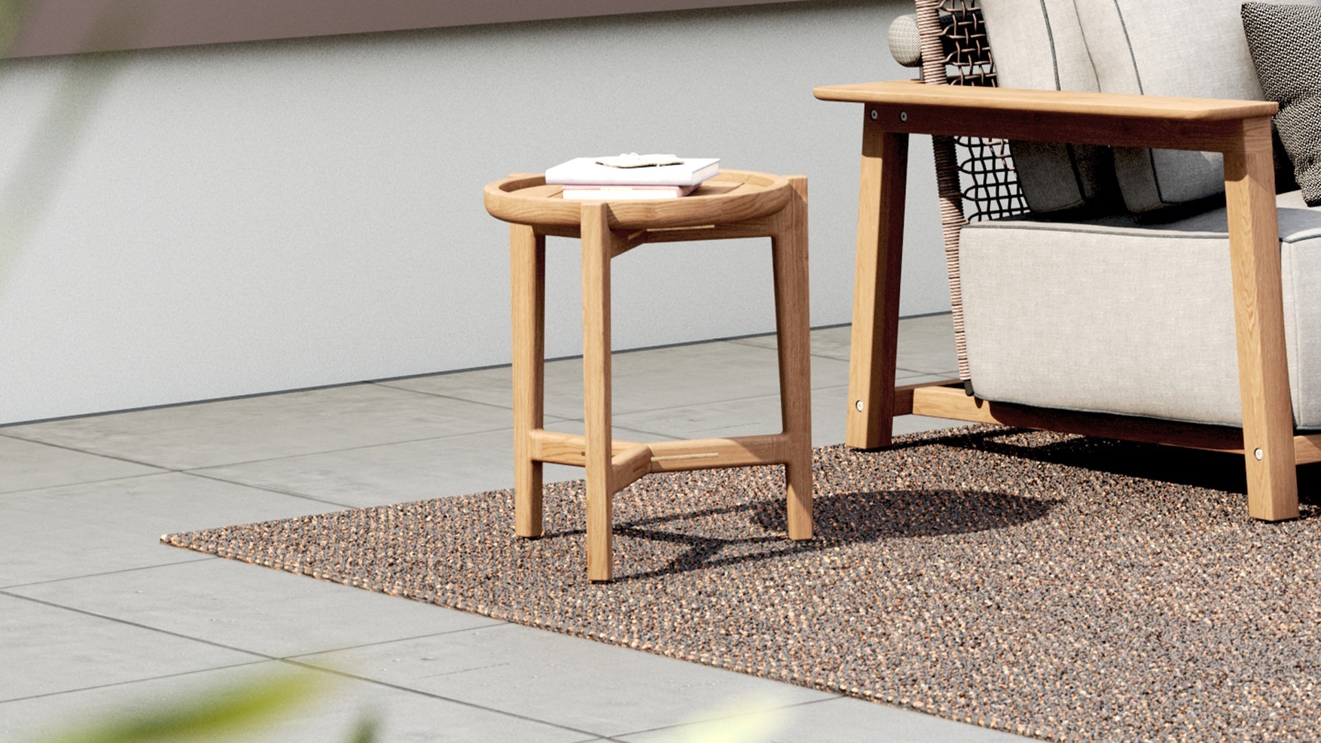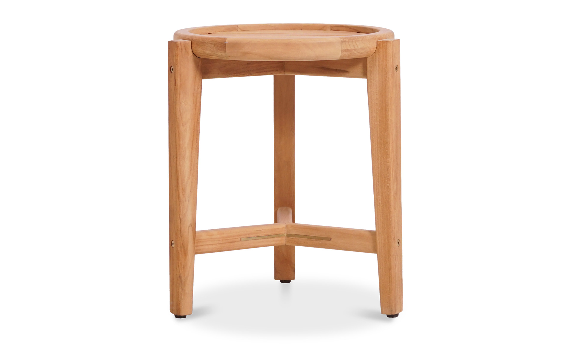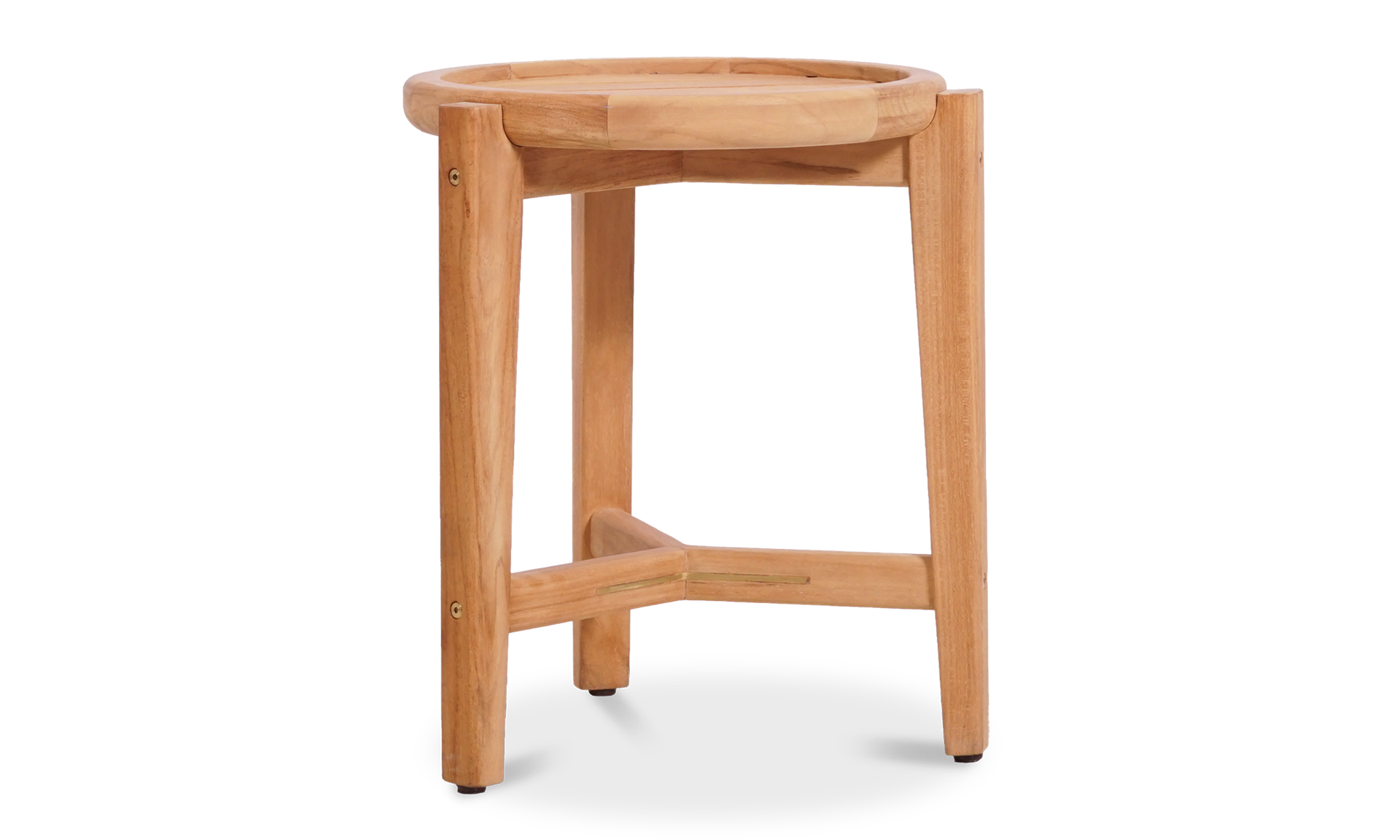 The aspen side table is small in size but big on character. Its rounded form and natural teak finish bring a soft, organic touch to your outdoor space, while the clean silhouette keeps things feeling modern and intentional.