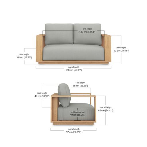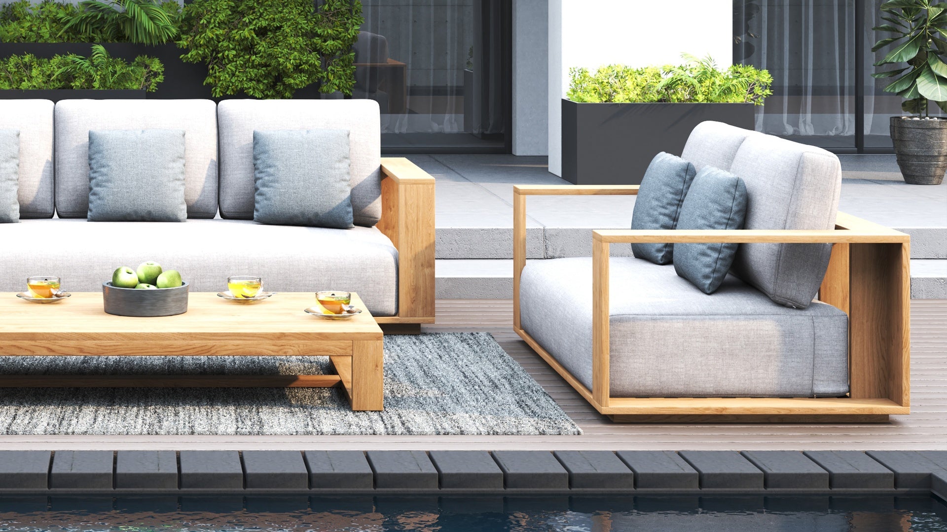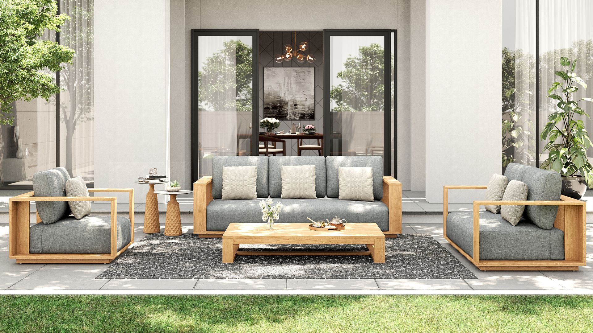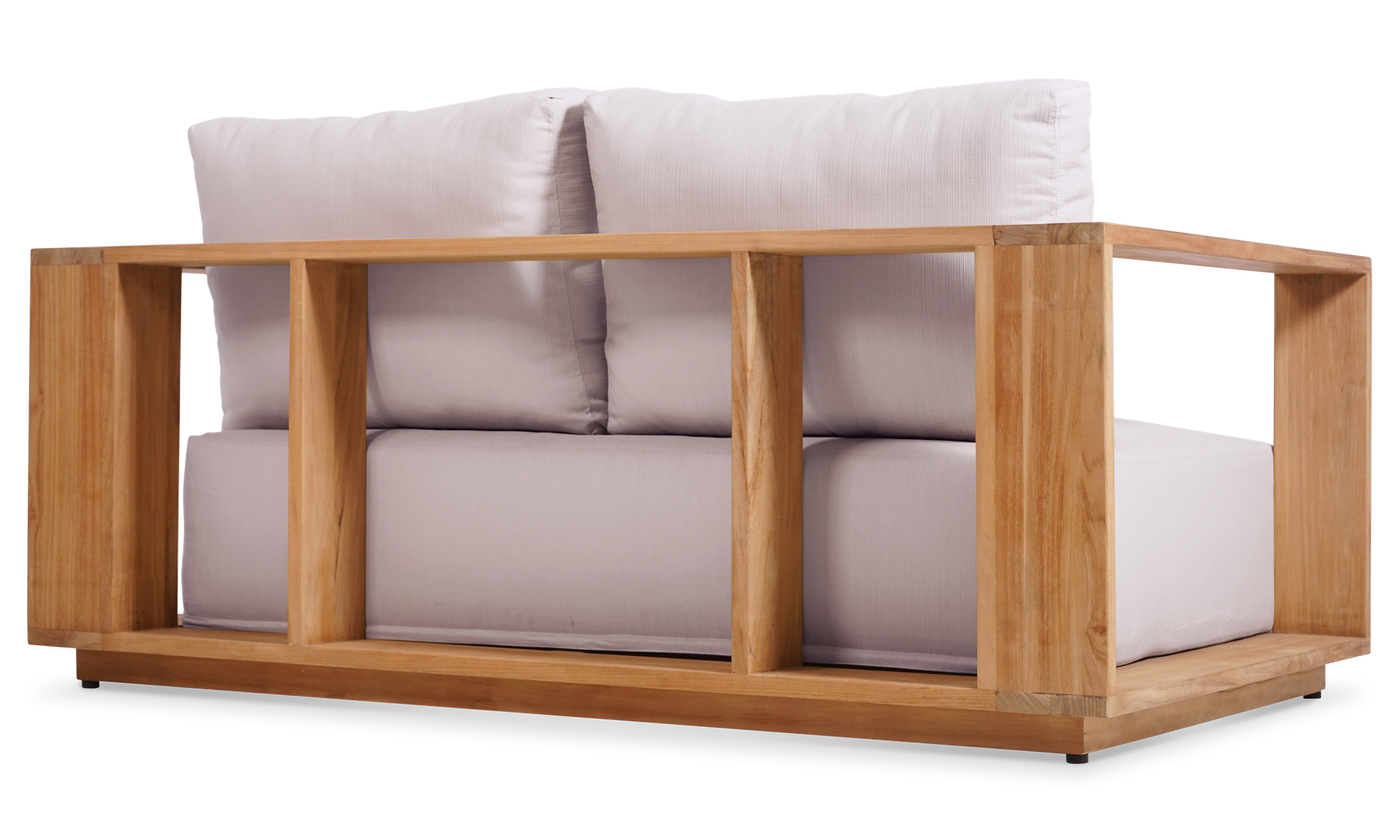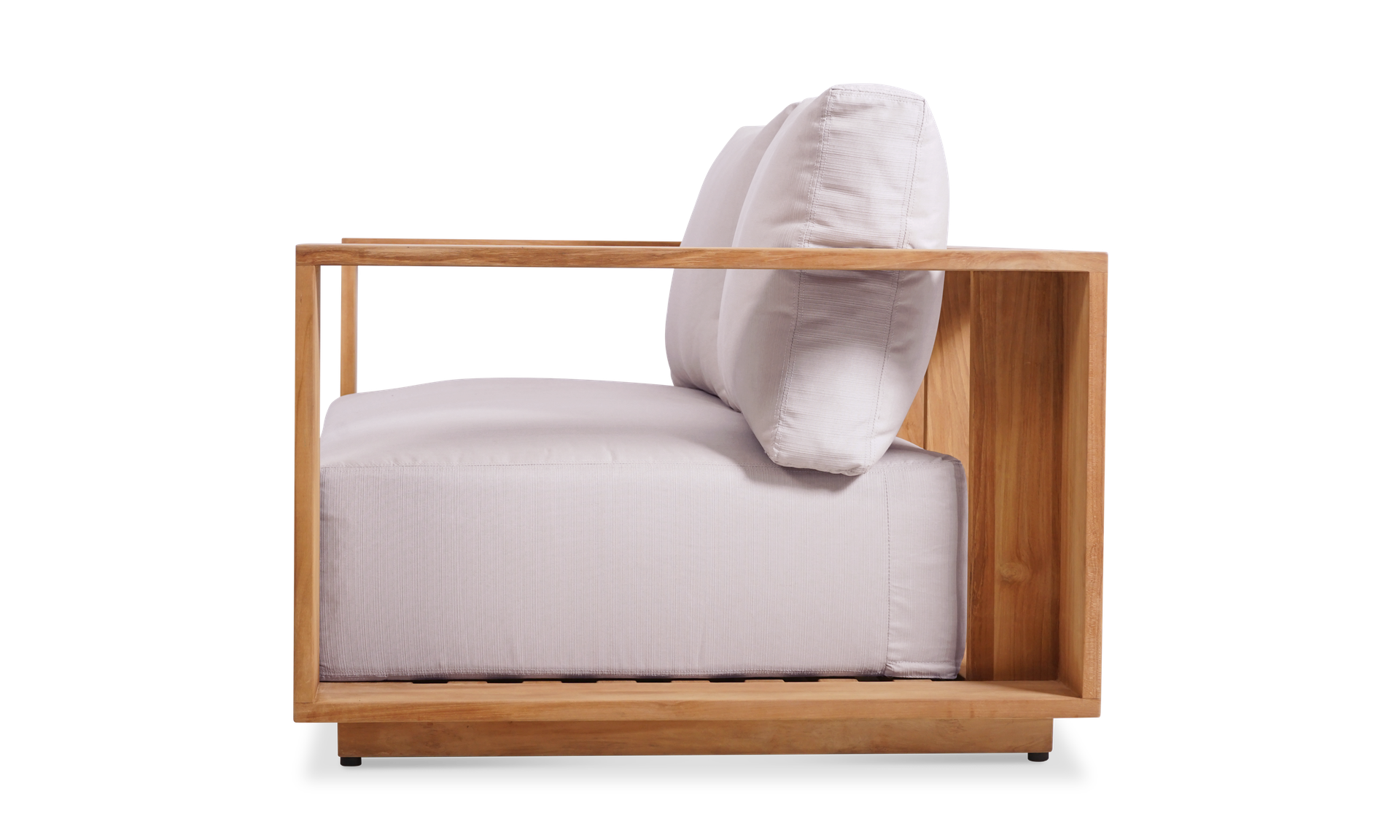 Each piece is handcrafted by skilled artisans, giving it a unique character and lasting quality. The weather-resistant teak and outdoor cushions filled with quick-dry foam make it just as practical as it is luxurious.