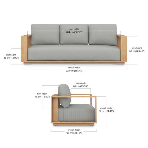 Handcrafted by skilled artisans, each sofa has its own unique character and a build quality you can feel. The solid teak frame and weather-resistant cushions with quick-dry foam are designed to thrive outdoors, no matter the season.