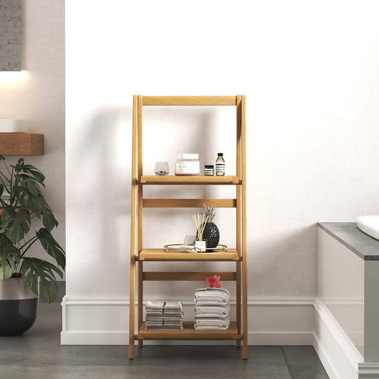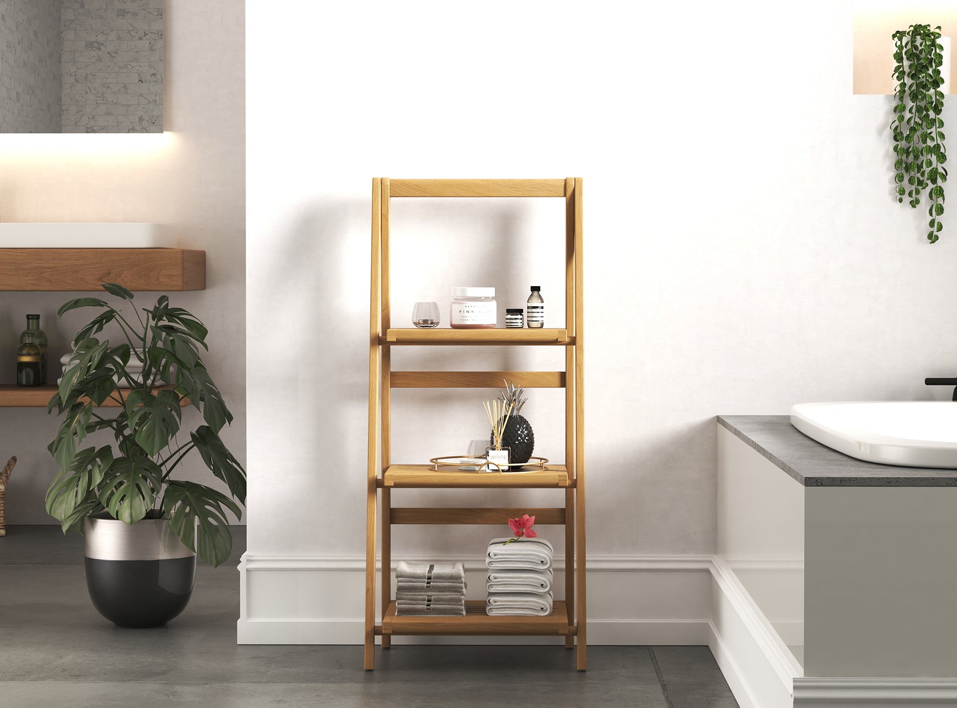 The costa shelf brings form and function together with understated style. This three-tier teakwood shelf makes organising your bathroom feel effortless, with trays angled on sturdy legs for balance and support. Crafted from marine-grade teak, it stands up to moisture with ease, while the built-in handle makes it easy to carry from room to room. When not in use, simply fold it away for tidy storage. Practical, portable and made to last, costa is a little helper with a lot of charm.