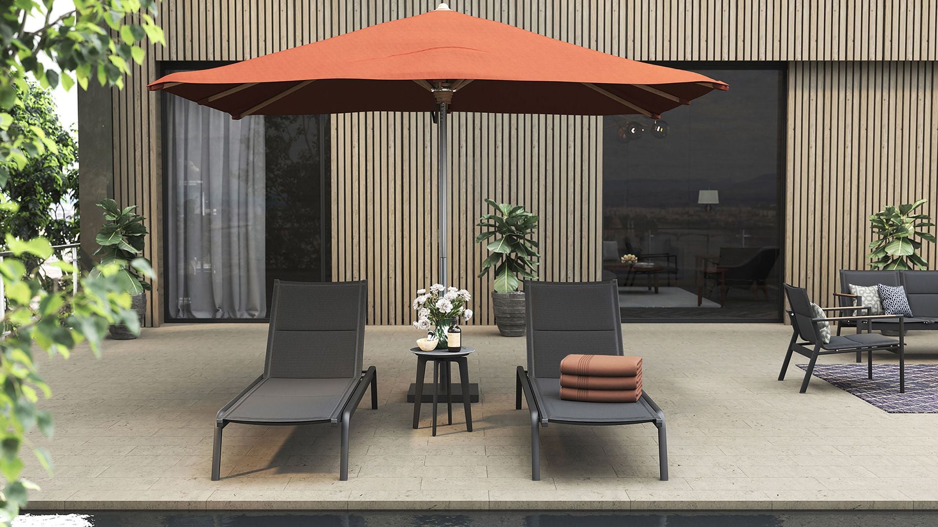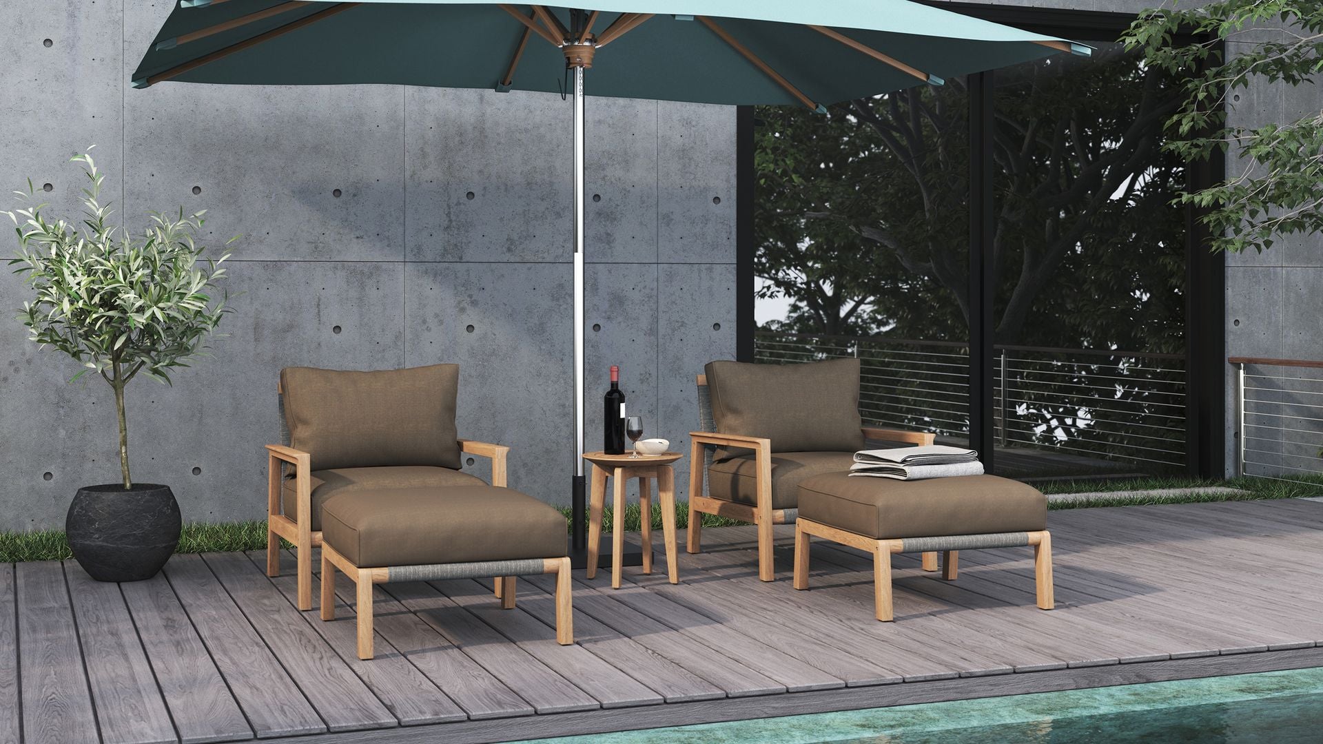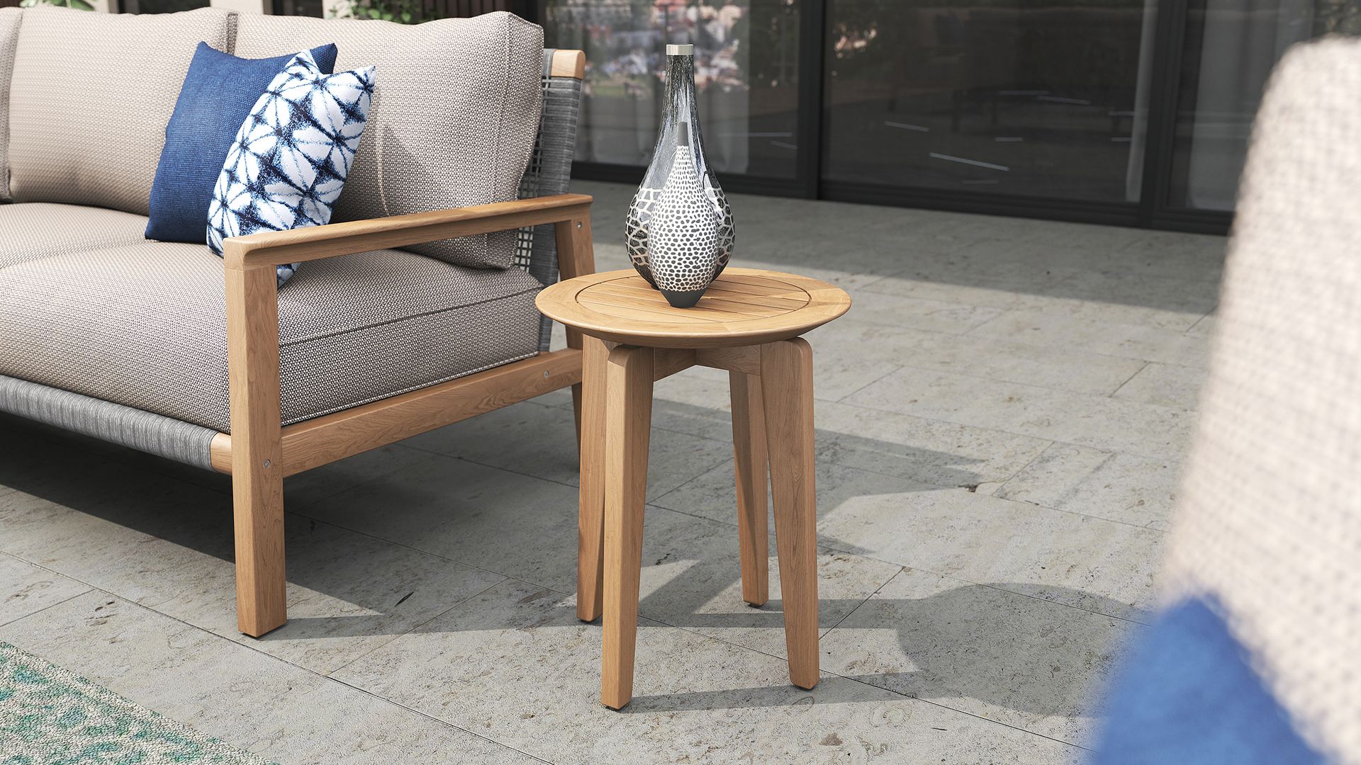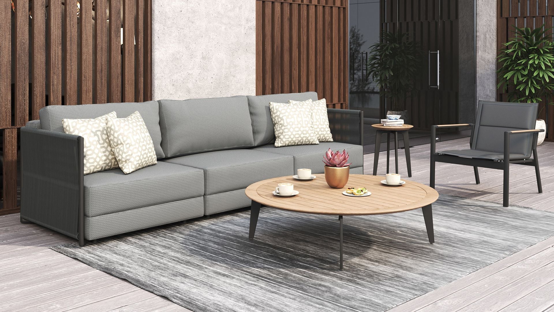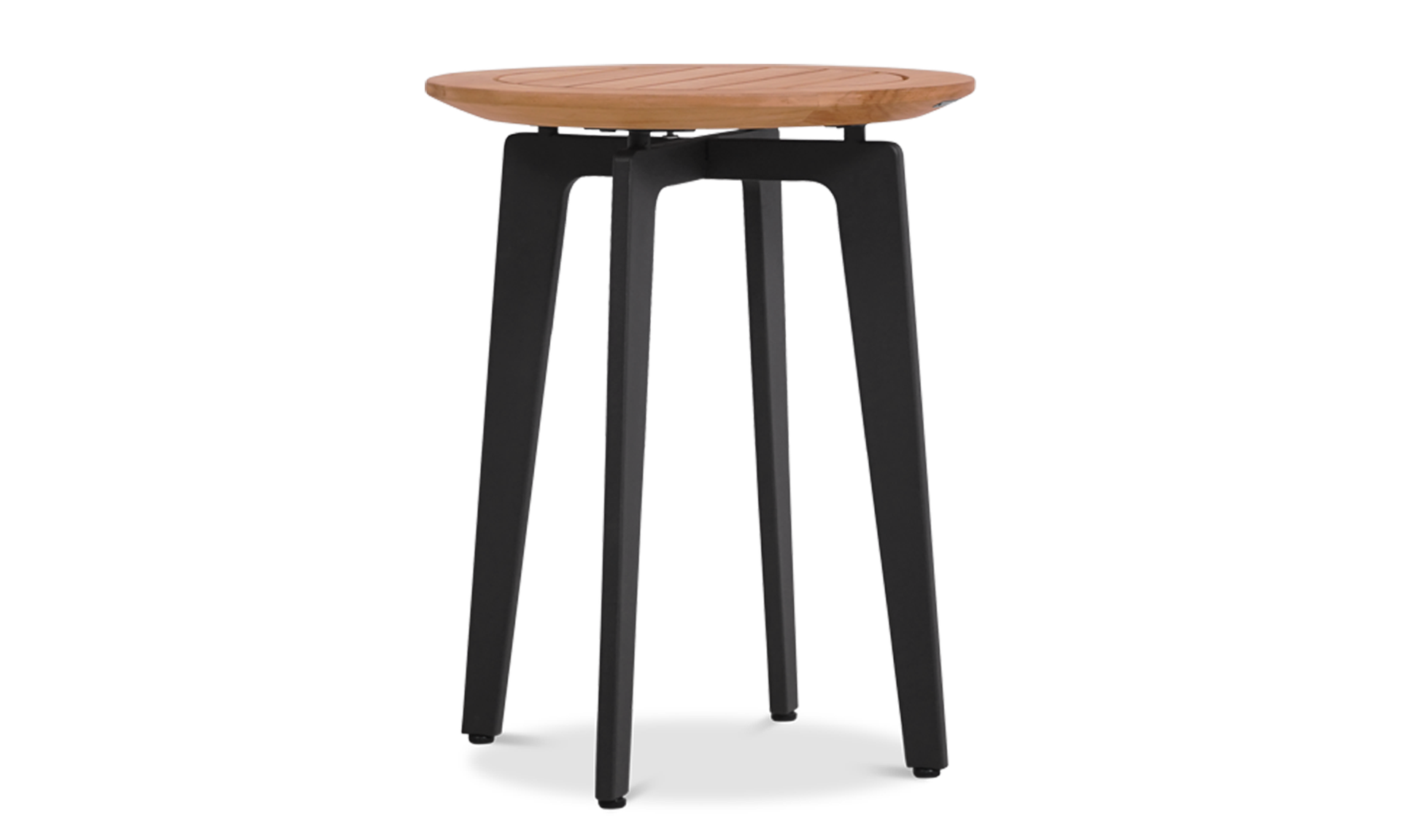 Choose from a full teak version for a natural, warm look, or go bolder with powder-coated stainless steel legs. For a refined finish, opt for a ceramic top, available in multiple colours, offering a matte texture that resists scratches, stains, and sun.