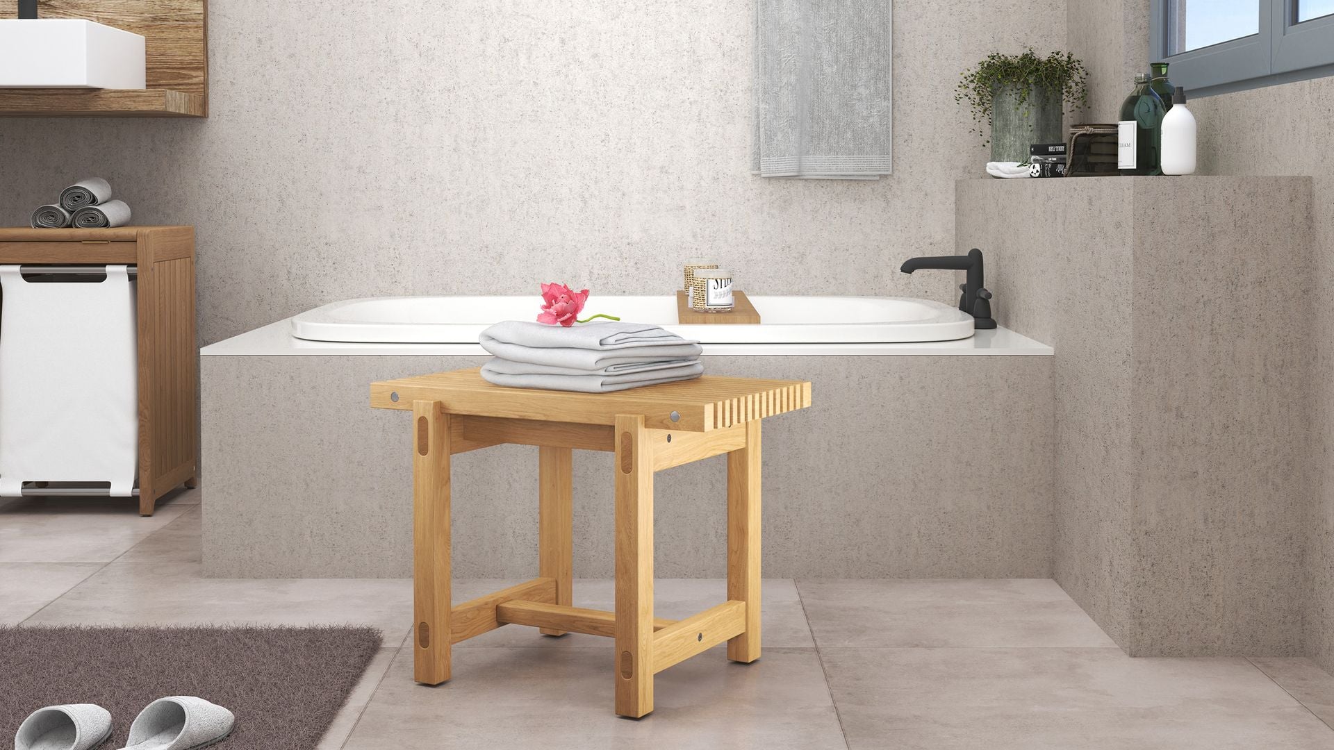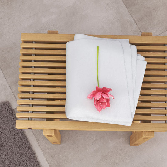 Meet the elliot bathroom stool. Naturally resistant to moisture and built entirely from solid teak, it's the kind of piece that feels right at home in your bath, dressing space or vanity area. The compact form is light enough to carry with one hand, while slatted detailing across the seat allows water to drain freely. With its sturdy frame, simple silhouette and marine teak finish, this stool is as functional as it is timeless.