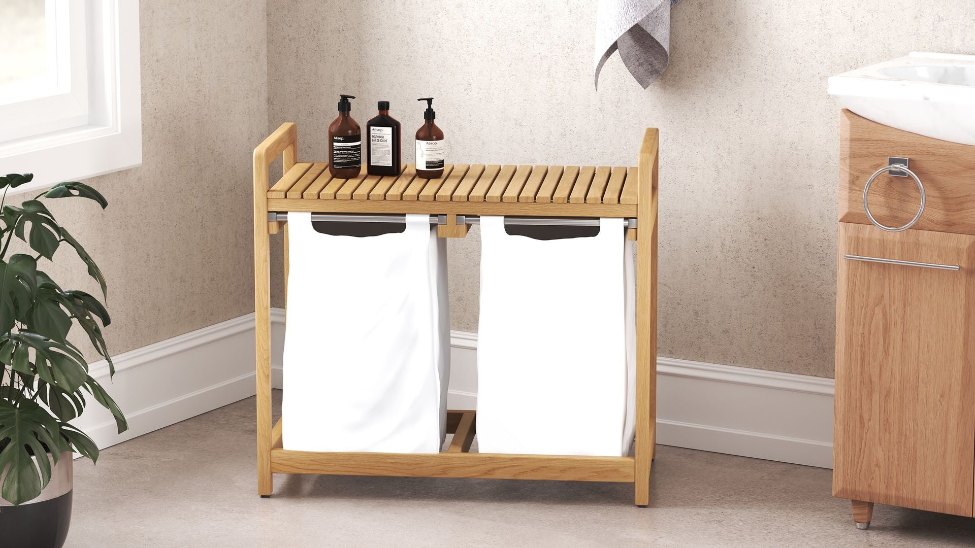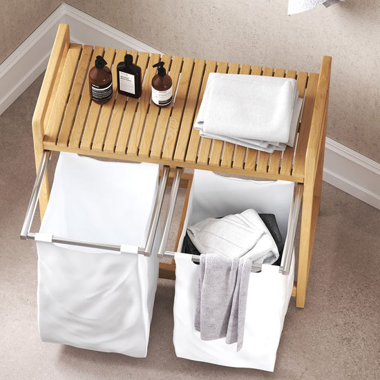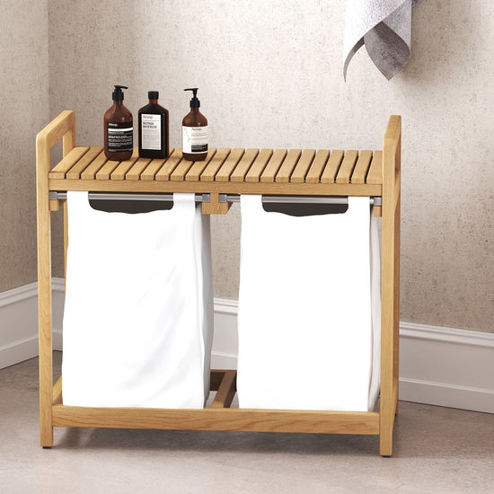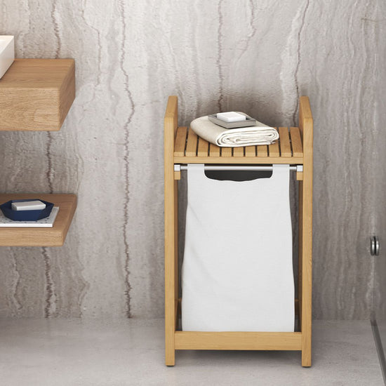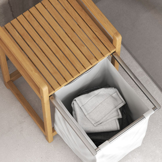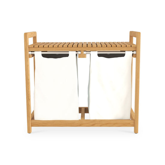 Meet the emil laundry basket, the stylish solution to your laundry needs. Available in both single and double slot versions, this clever design pairs form with function in all the right ways. Crafted from marine-grade solid teak, it brings natural warmth and durability to your bathroom or laundry space.