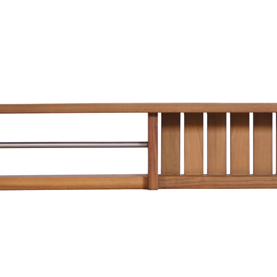 Meet the filo shelf, a smart space-saver designed for the modern bathroom or entryway. It comes in two configurations: one with an integrated towel rack and one without. Either way, it offers a tidy solution for organising your everyday essentials. Crafted from solid marine-grade teak, this piece is built to handle humid spaces with ease and elegance.