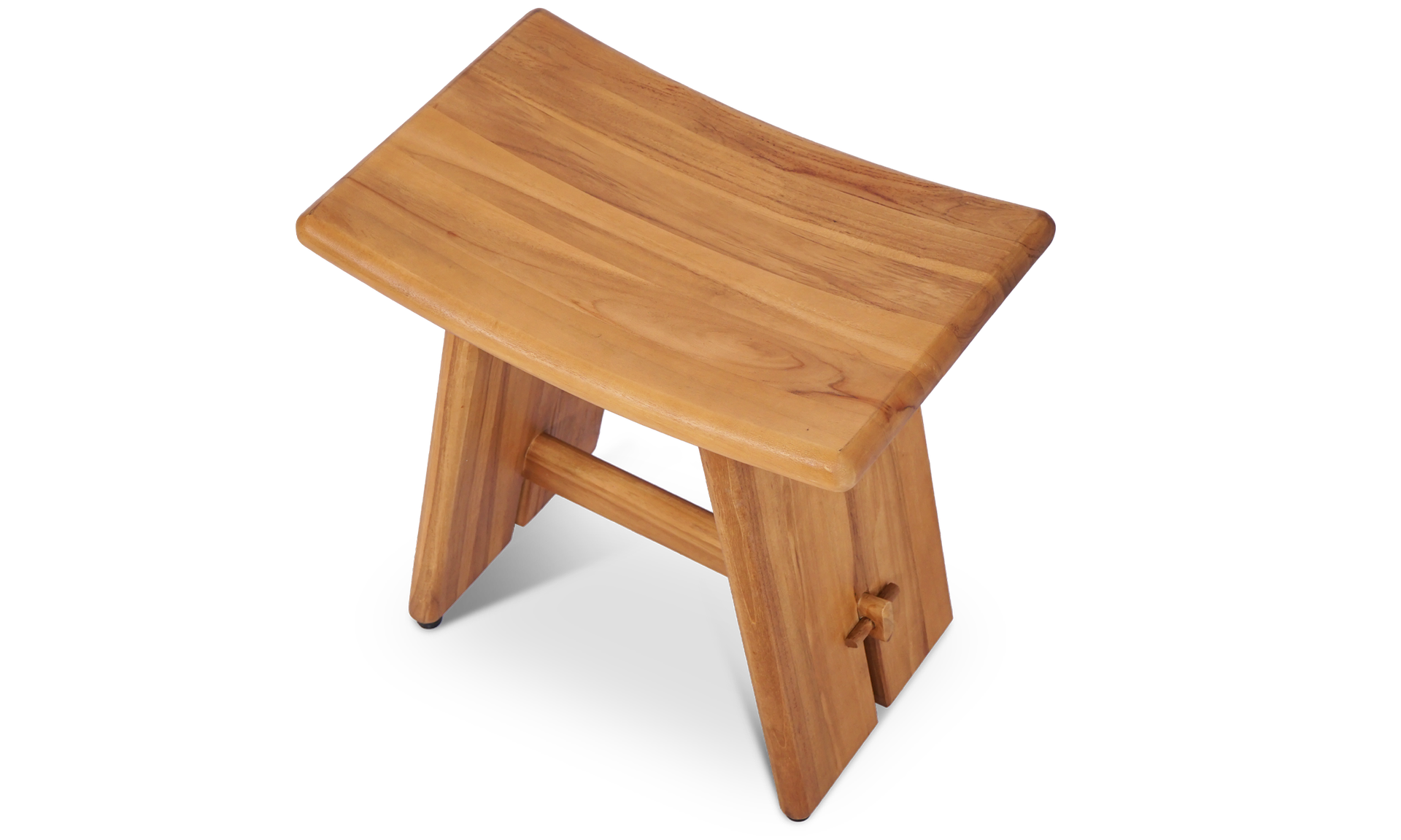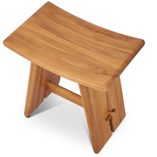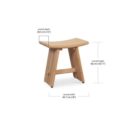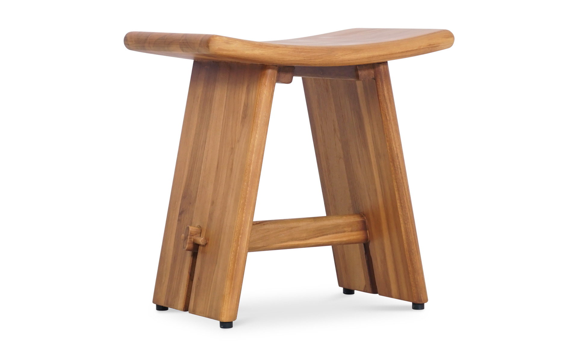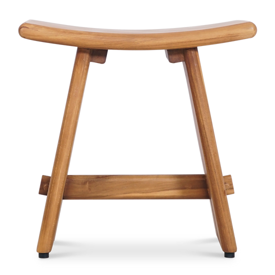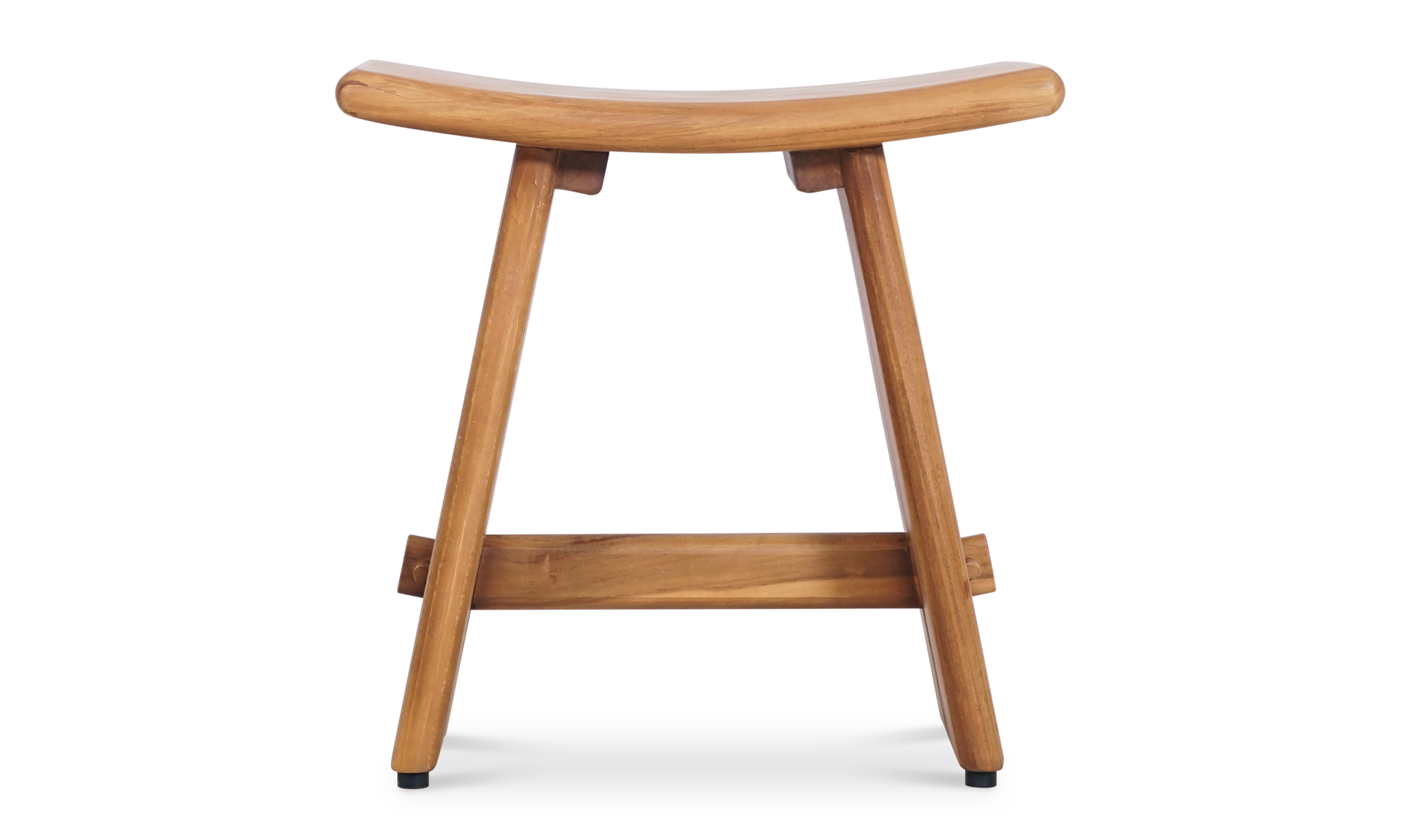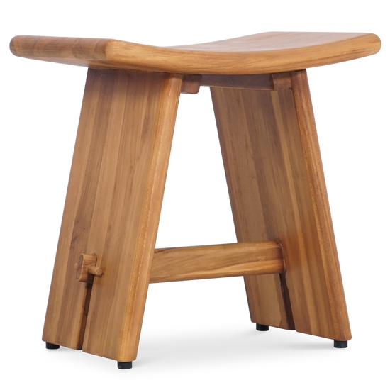 Designed to sit quietly but confidently, the haven curved stool brings structure and softness in equal measure. Crafted from solid teak in a natural finish, its sculptural seat features a gentle inward slope, subtle enough to keep things like towels or candles from sliding off, but not so pronounced it can’t double as a side table.