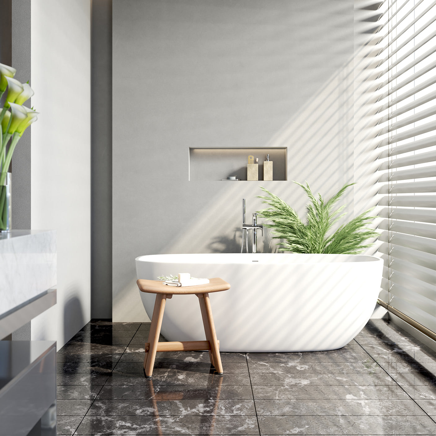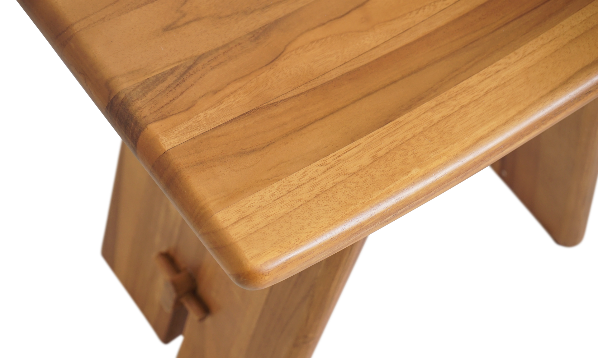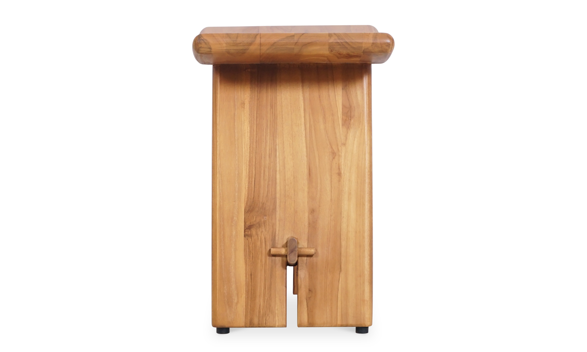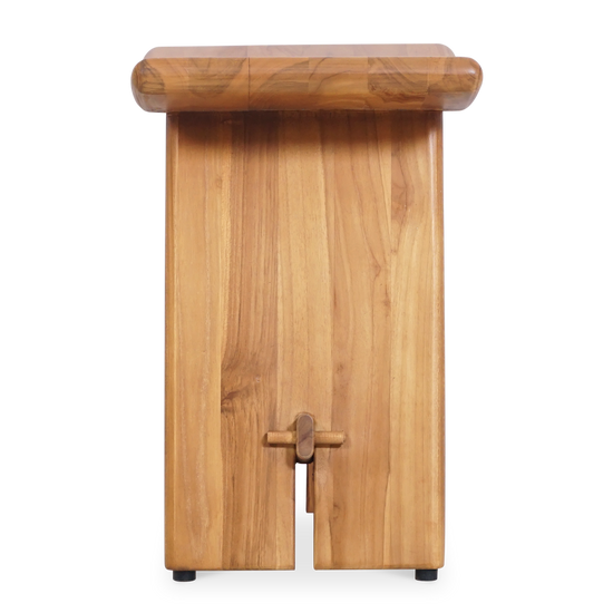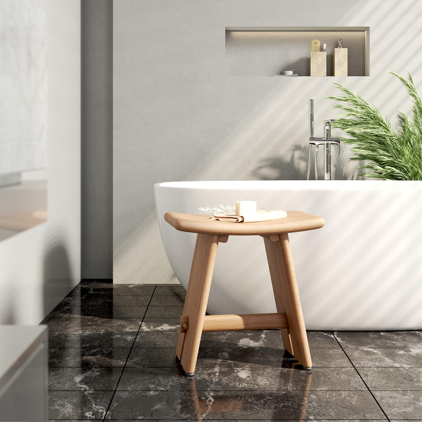 Designed to sit quietly but confidently, the haven curved stool brings structure and softness in equal measure. Crafted from solid teak in a natural finish, its sculptural seat features a gentle inward slope, subtle enough to keep things like towels or candles from sliding off, but not so pronounced it can’t double as a side table.