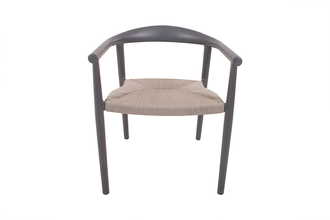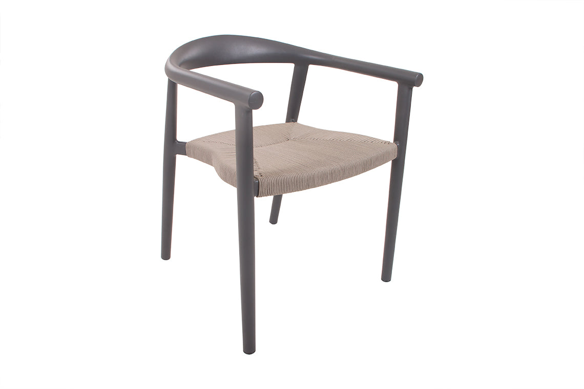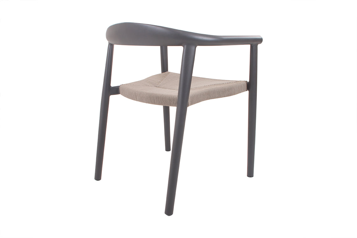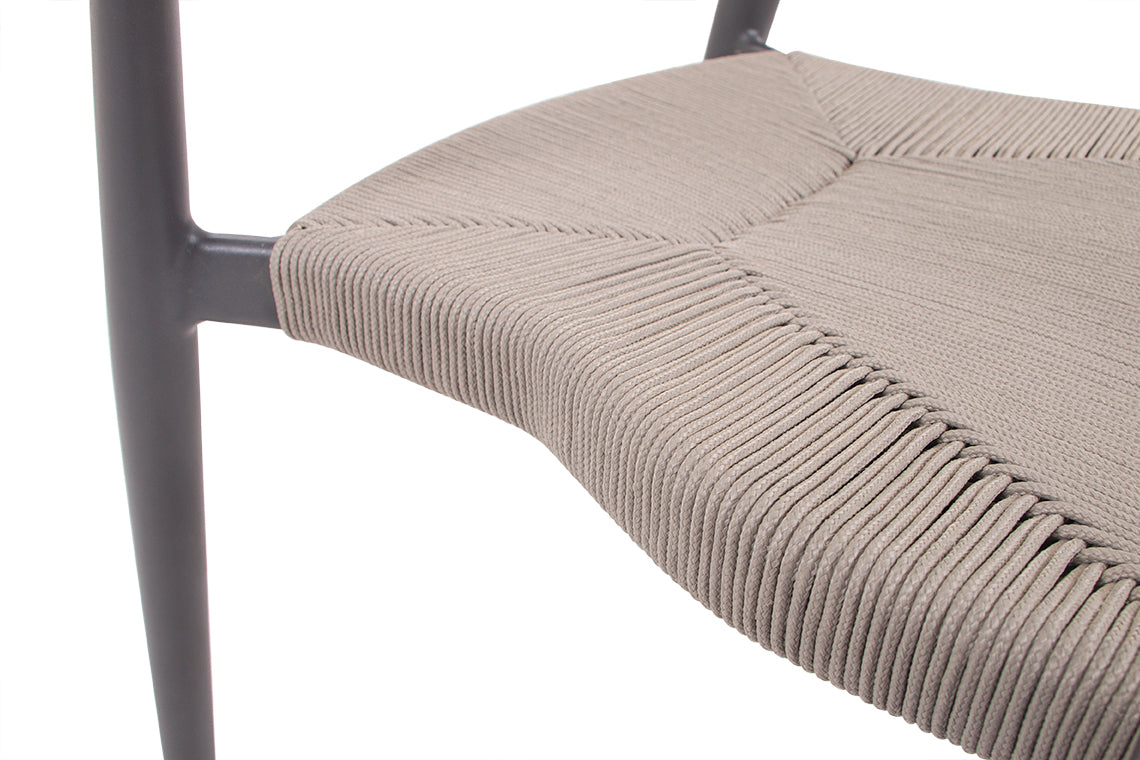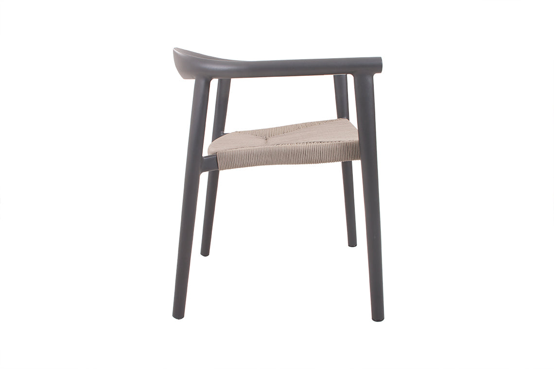 The seat is handwoven in either rope or Danish cord style, designed to echo the look of traditional seagrass while being tough enough for the outdoors. With its clean lines, stackable design and low maintenance materials, this chair is ideal for both residential and commercial use.