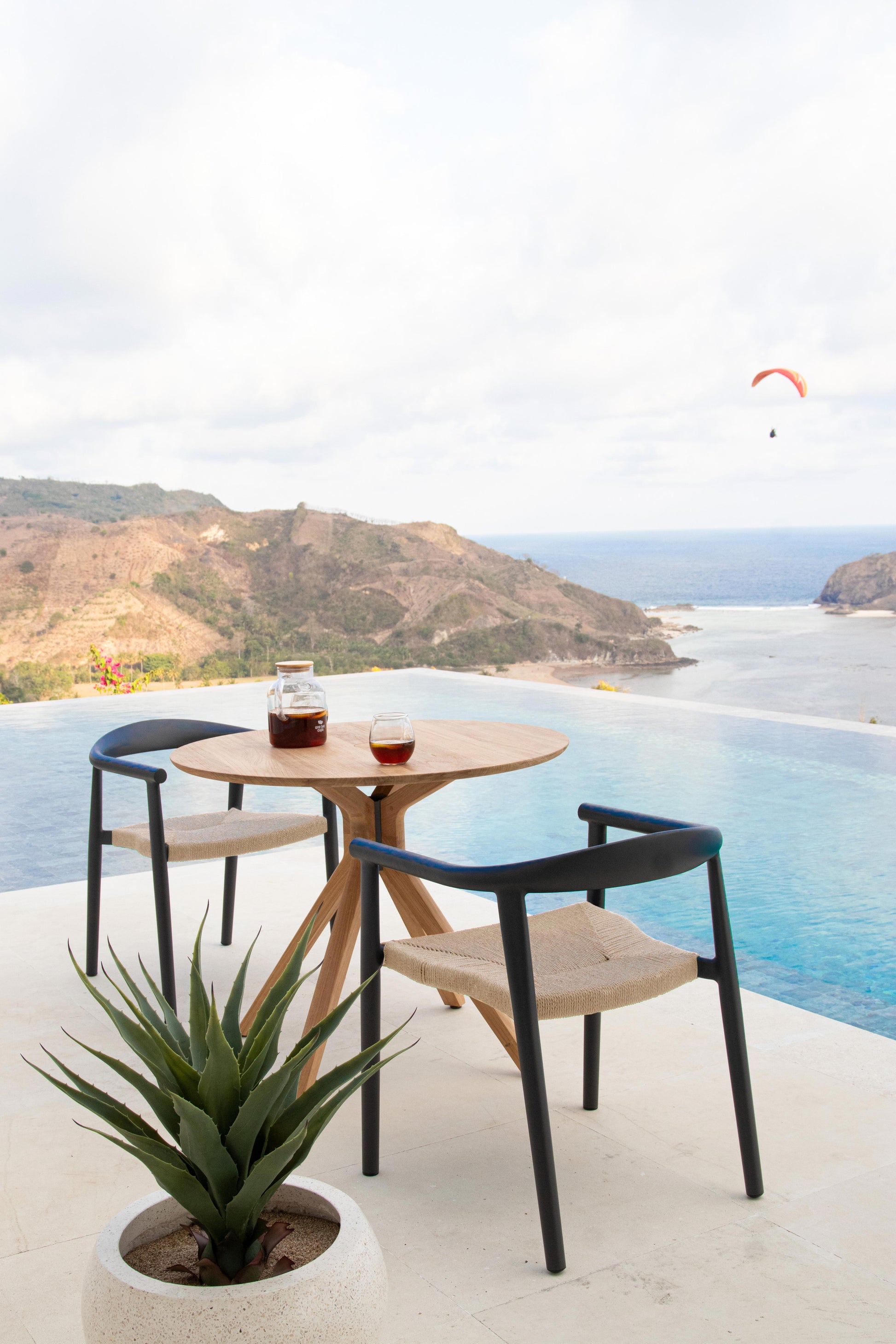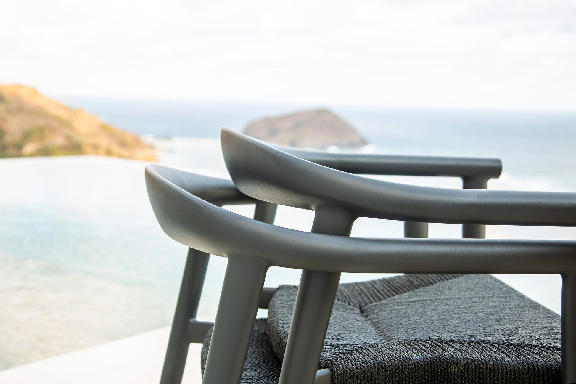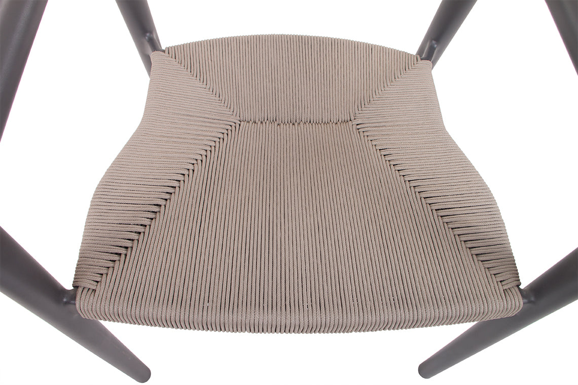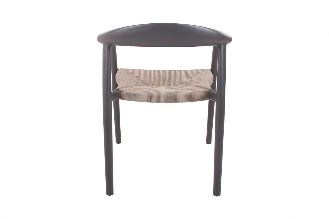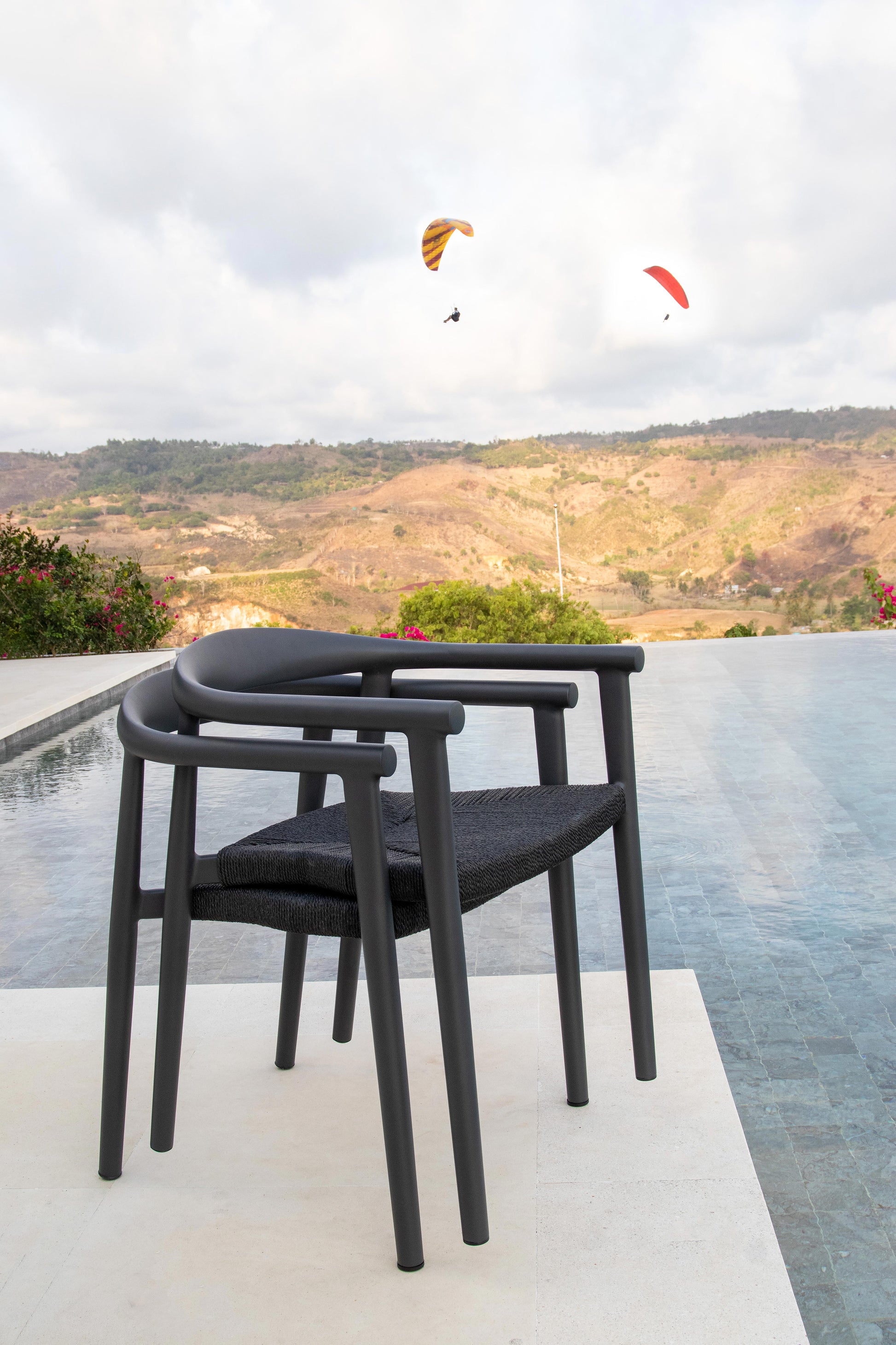 The seat is handwoven in either rope or Danish cord style, designed to echo the look of traditional seagrass while being tough enough for the outdoors. With its clean lines, stackable design and low maintenance materials, this chair is ideal for both residential and commercial use.