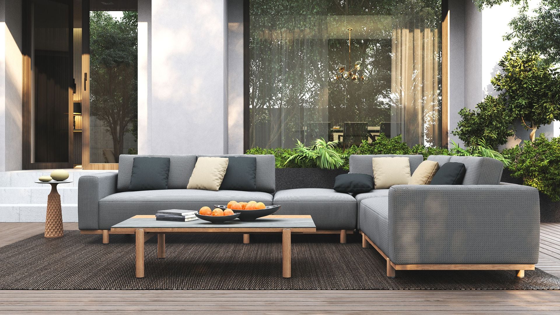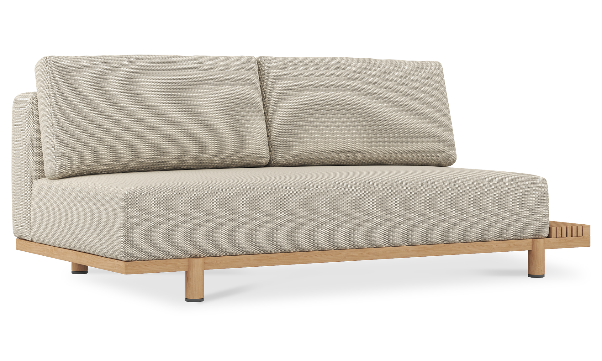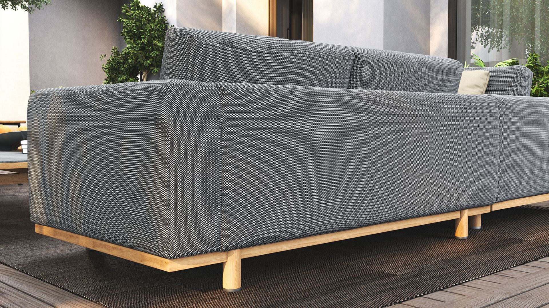 Crafted with plush cushions and gently rounded edges, each module is upholstered in high-performance Sunproof olefin – available in a curated selection of boucle and classic textures. This premium outdoor fabric is water-repellent, fast-drying, and resistant to fading, stains, and mildew, so you can leave it outside without second thoughts.