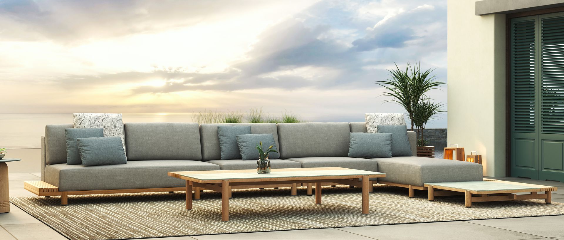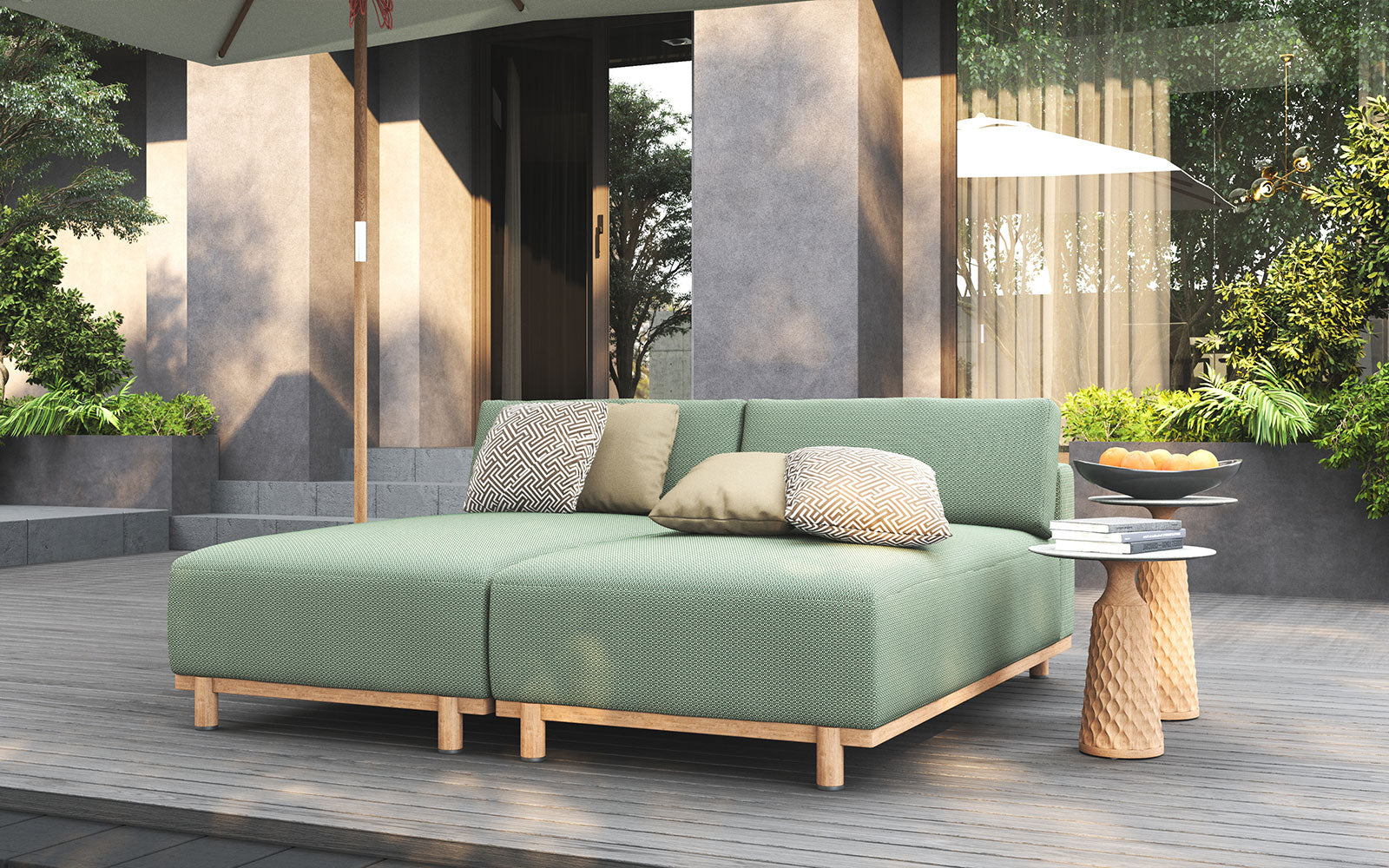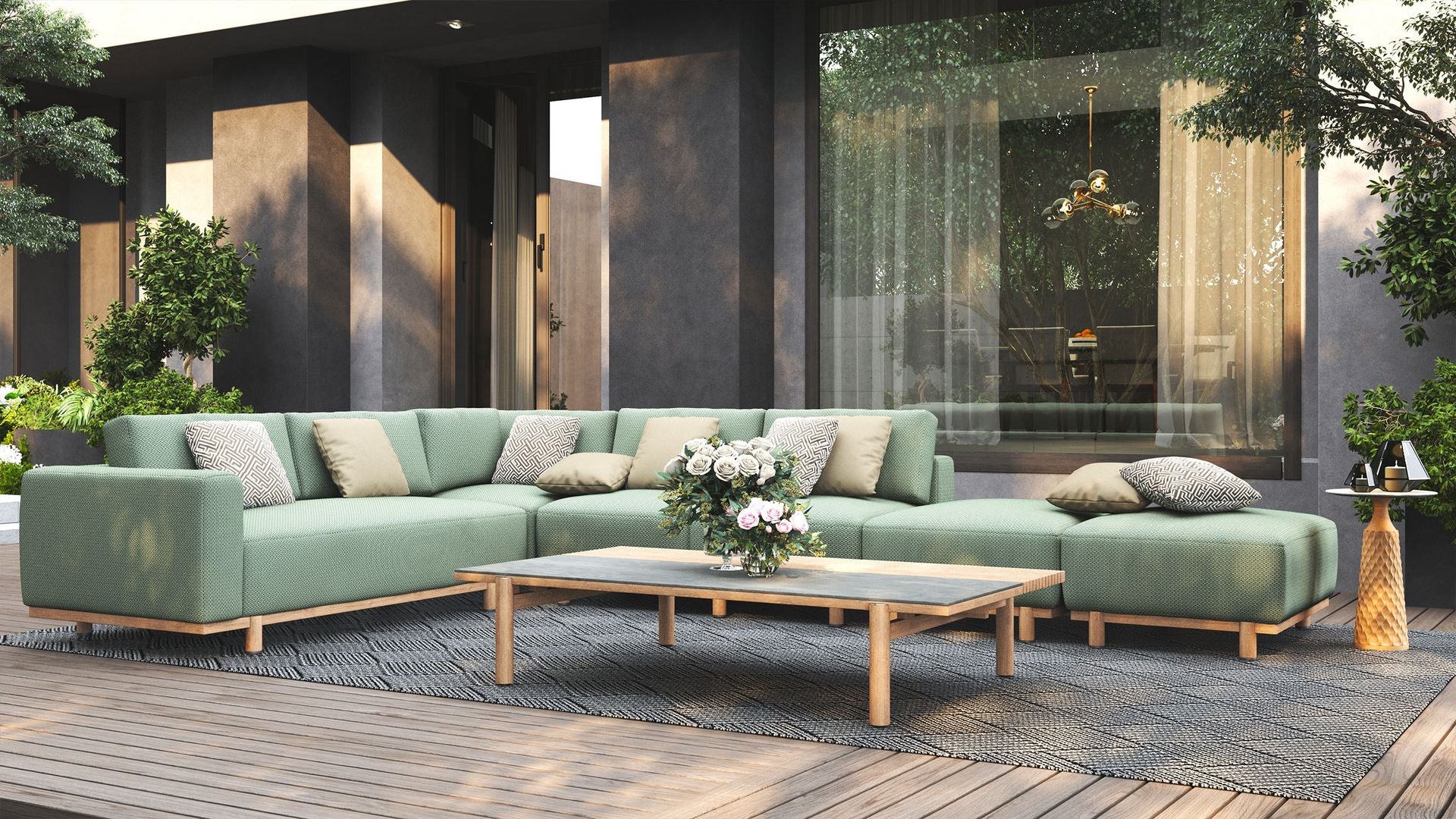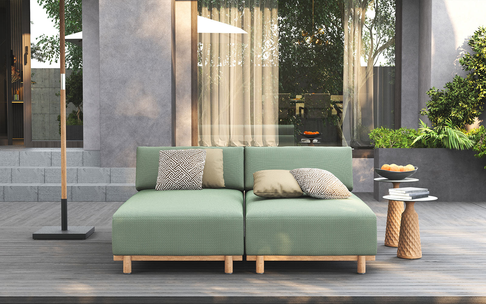 Crafted with plush cushions and gently rounded edges, each module is upholstered in high-performance Sunproof olefin – available in a curated selection of boucle and classic textures. This premium outdoor fabric is water-repellent, fast-drying, and resistant to fading, stains, and mildew, so you can leave it outside without second thoughts.