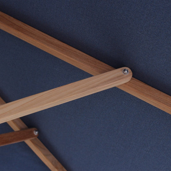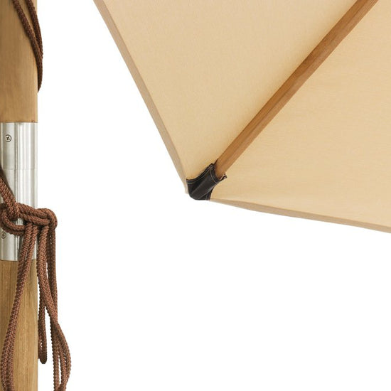 The raised vent at the top helps stabilise airflow during wind gusts, while the reinforced leather pockets securely hold each rib in place for extra strength. Subtle yet sturdy, this umbrella integrates beautifully with our teak tables and loungers, and pairs with either a 30kg or 45kg umbrella base (sold separately).
