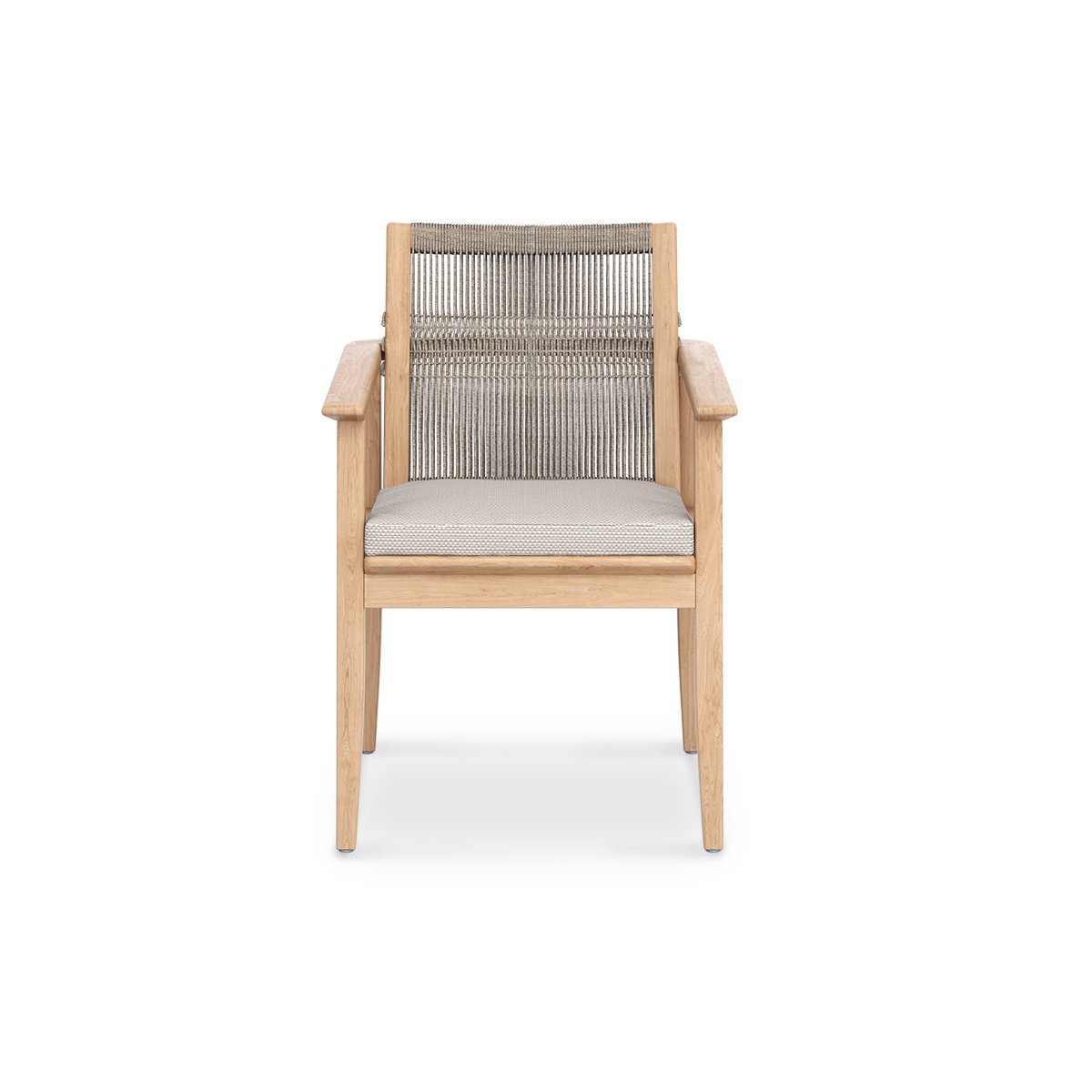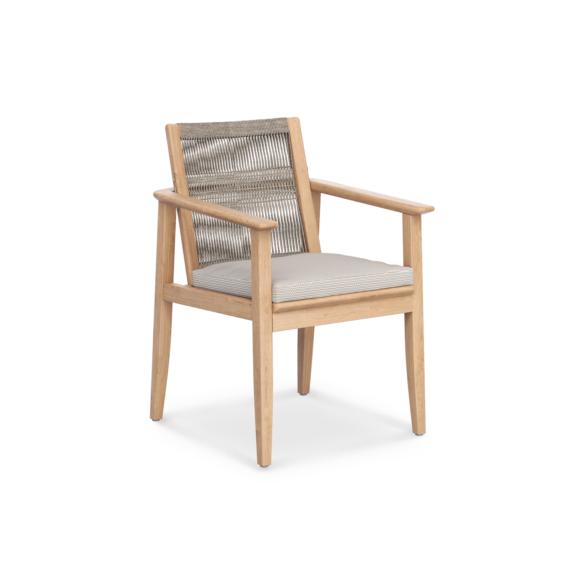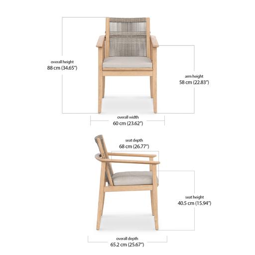 The slanted backrest is wrapped in handwoven hyacinth-style wicker, bringing texture and warmth to the frame. It’s a detail that’s not only beautiful, but comfortable too. A removable seat cushion finishes the design, upholstered in your choice of outdoor fabric that resists fading and UV exposure.