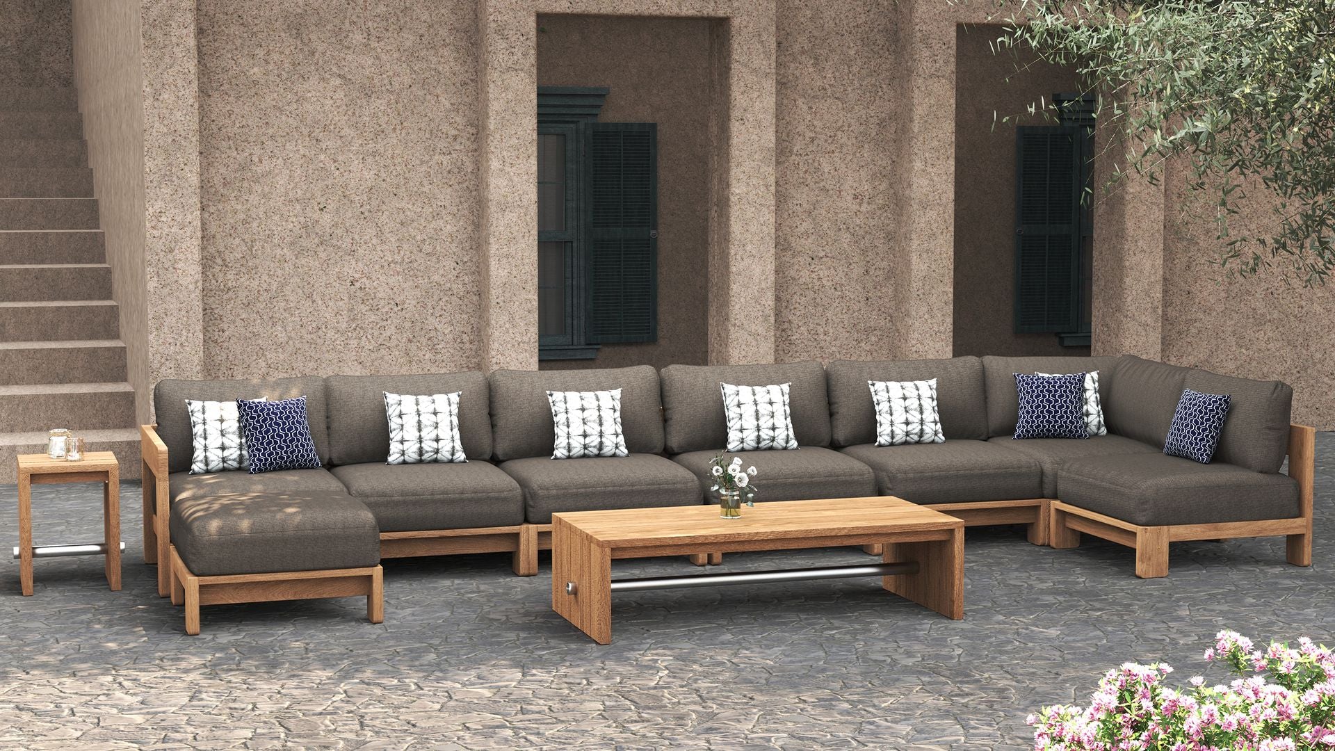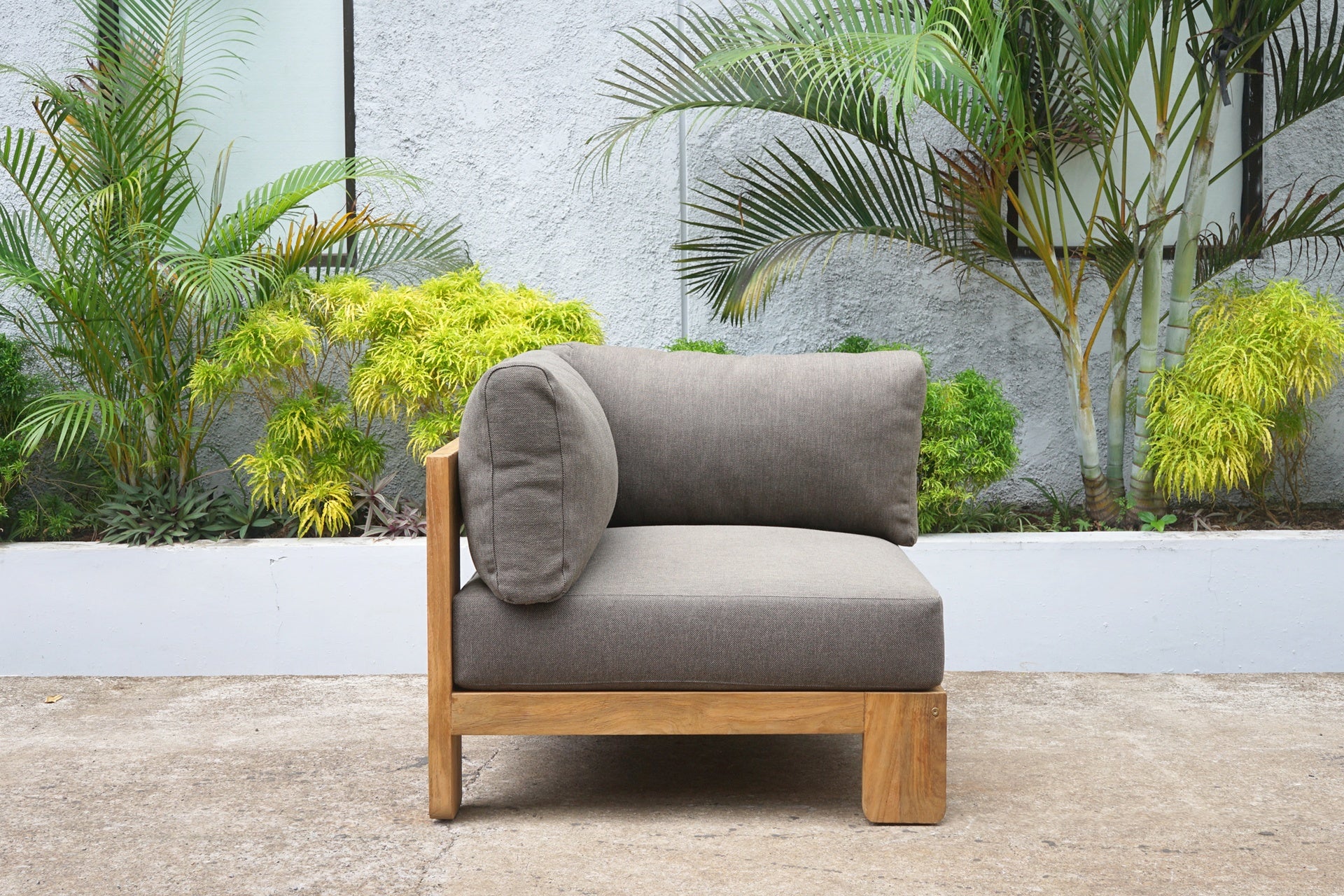 Topped with thick padded cushions, the rae modular delivers laid-back luxury without the fuss. Upholstered in removable covers that resist fading and are easy to clean, it’s designed for real life outdoors. Style it your way, rearrange it with ease, and make your space feel like your own.