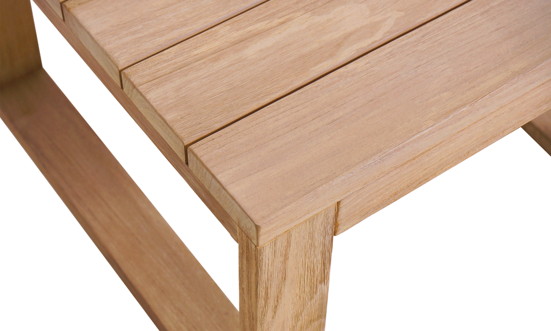 The signature square-leg silhouette adds sculptural weight, while the clean profile keeps things effortlessly modern. Crafted from richly grained solid teak, rosa brings a natural warmth that elevates any setting.