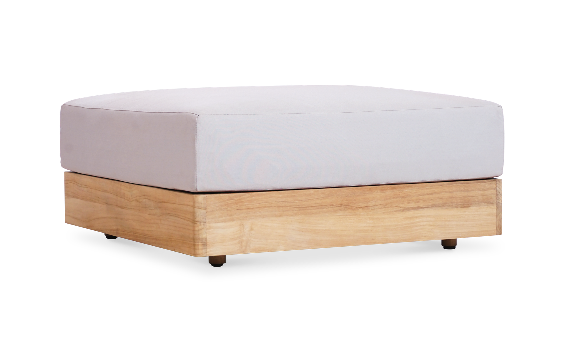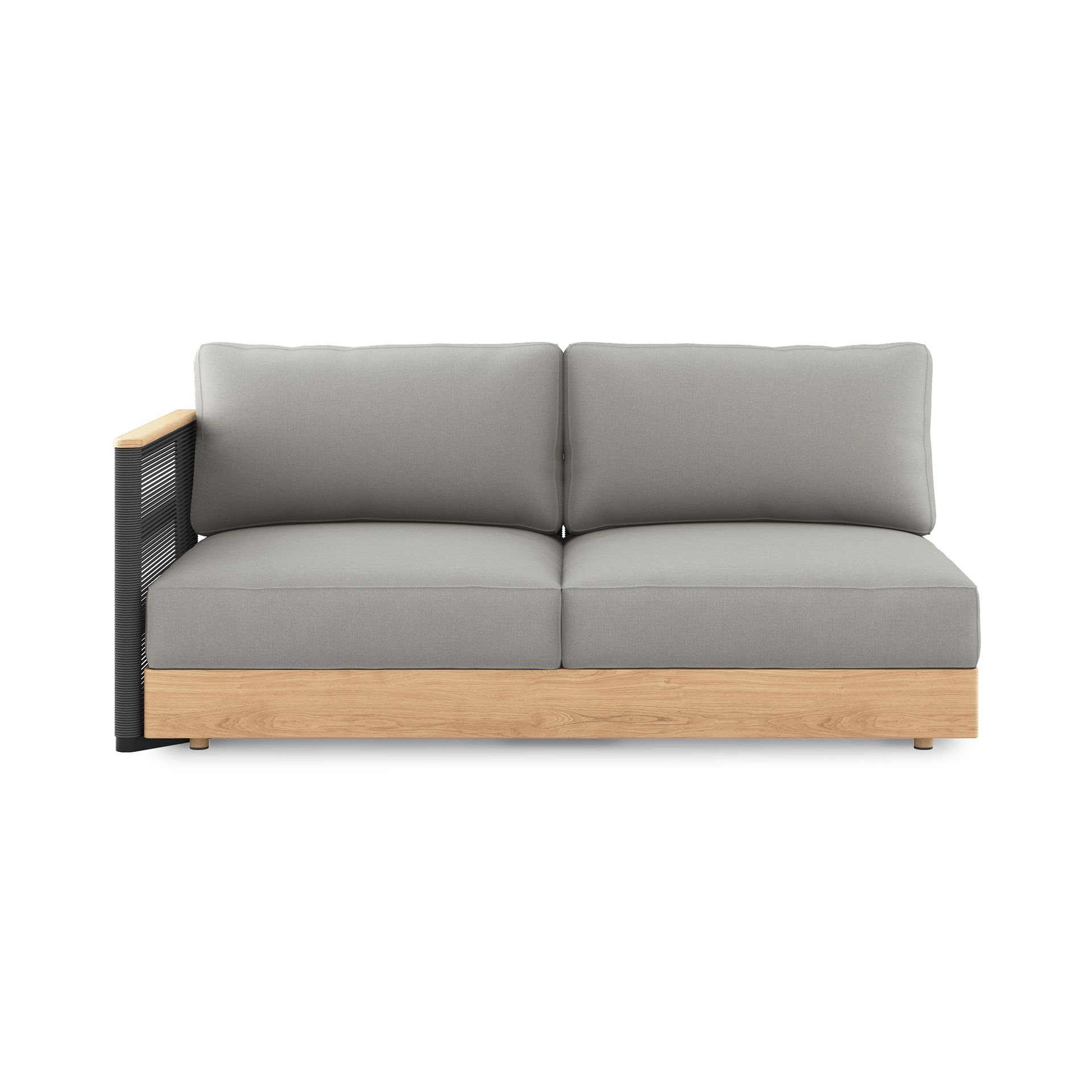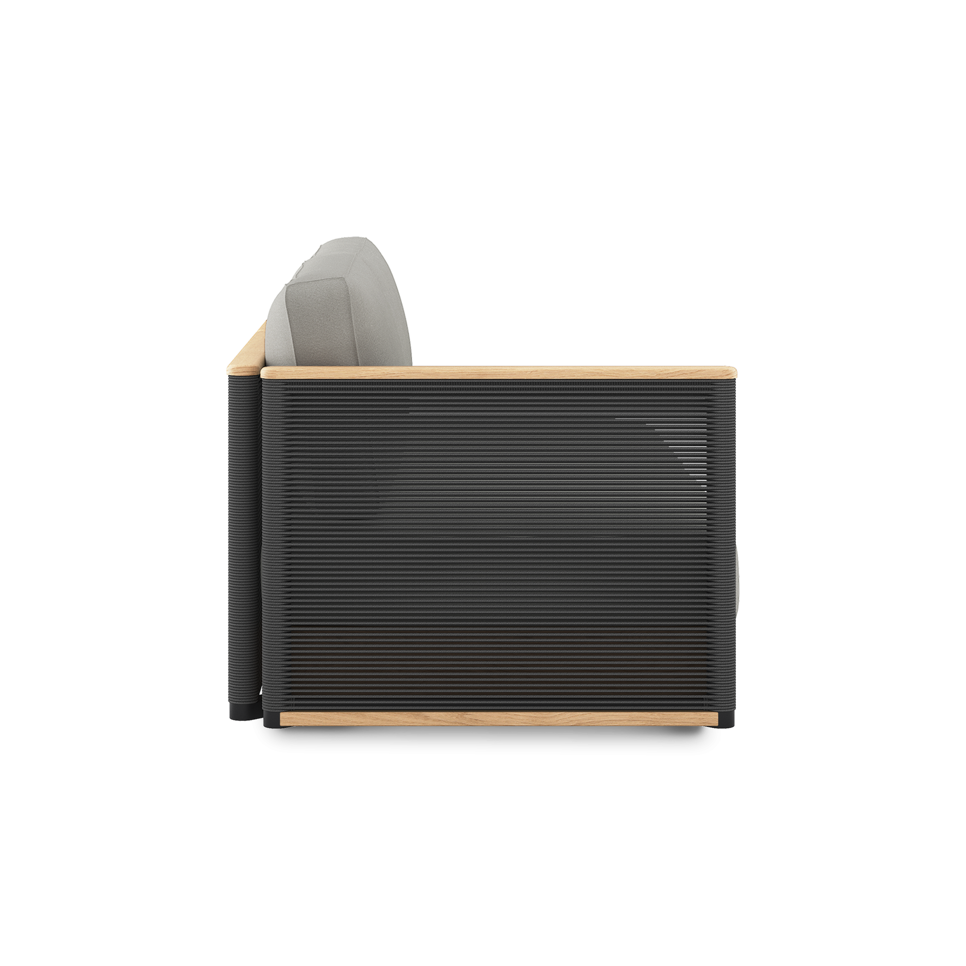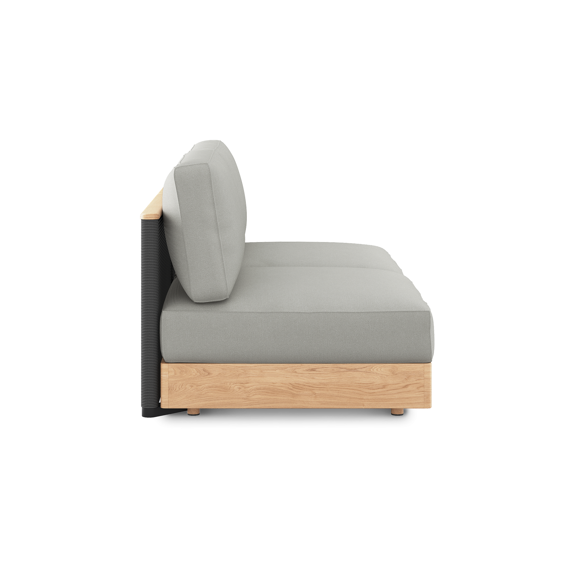 Each module features a solid teak base with an integrated outdoor sling that adds comfort while helping water drain quickly. The cushions are wrapped in high-performance Agora® fabric, known for its soft texture, UV resistance, and all-weather durability. Inside, Quick Dry Foam ensures everything dries fast and stays plush.