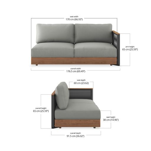 Rearranging is easy thanks to discreet stainless steel connectors, so you can switch things up whenever you feel like it. The covers are removable and machine washable, and the teak requires only occasional oiling to stay beautiful.