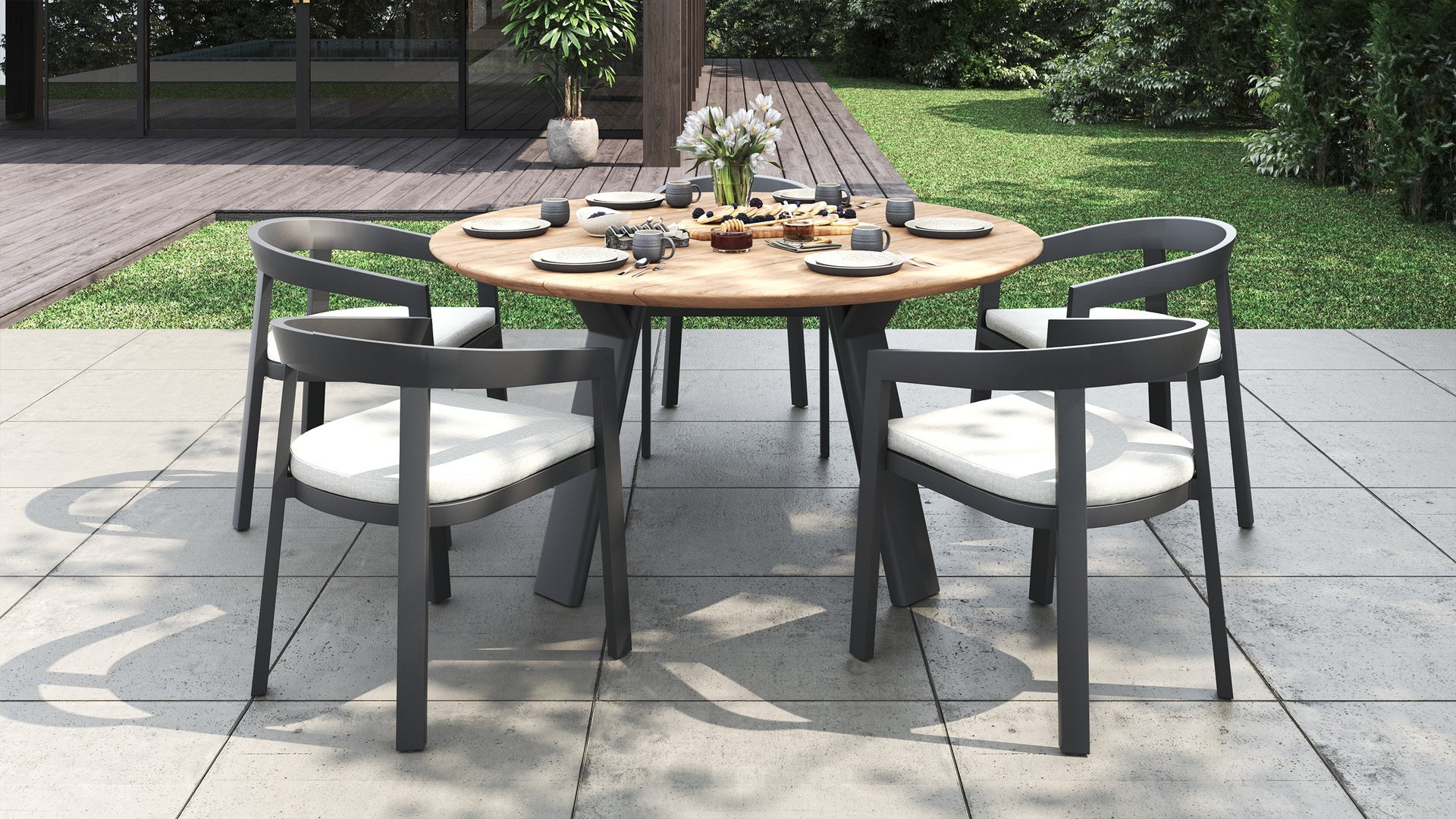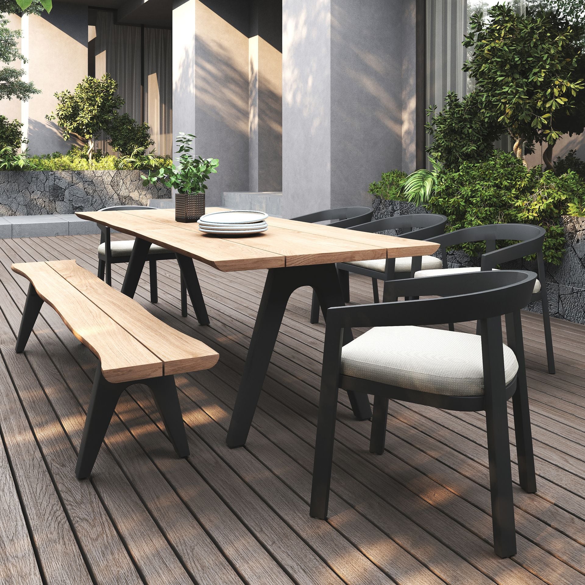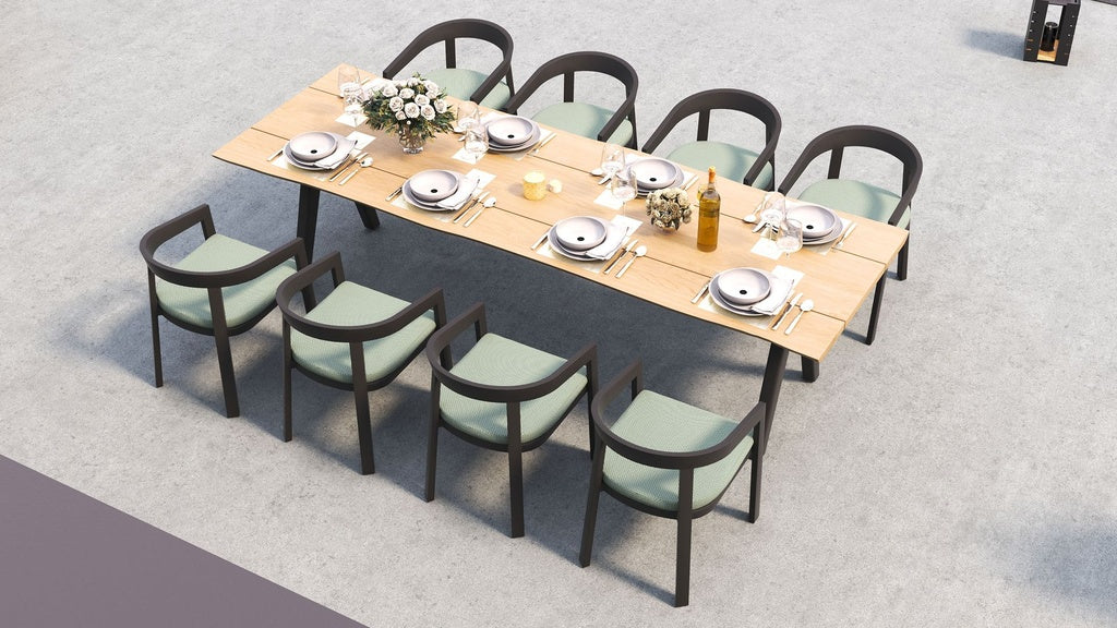 Sleek, sculpted, and ready for the elements. The vento alu dining chair pairs our signature curved design with a lightweight powder-coated aluminium frame, offering a crisp, modern silhouette built to thrive outdoors.