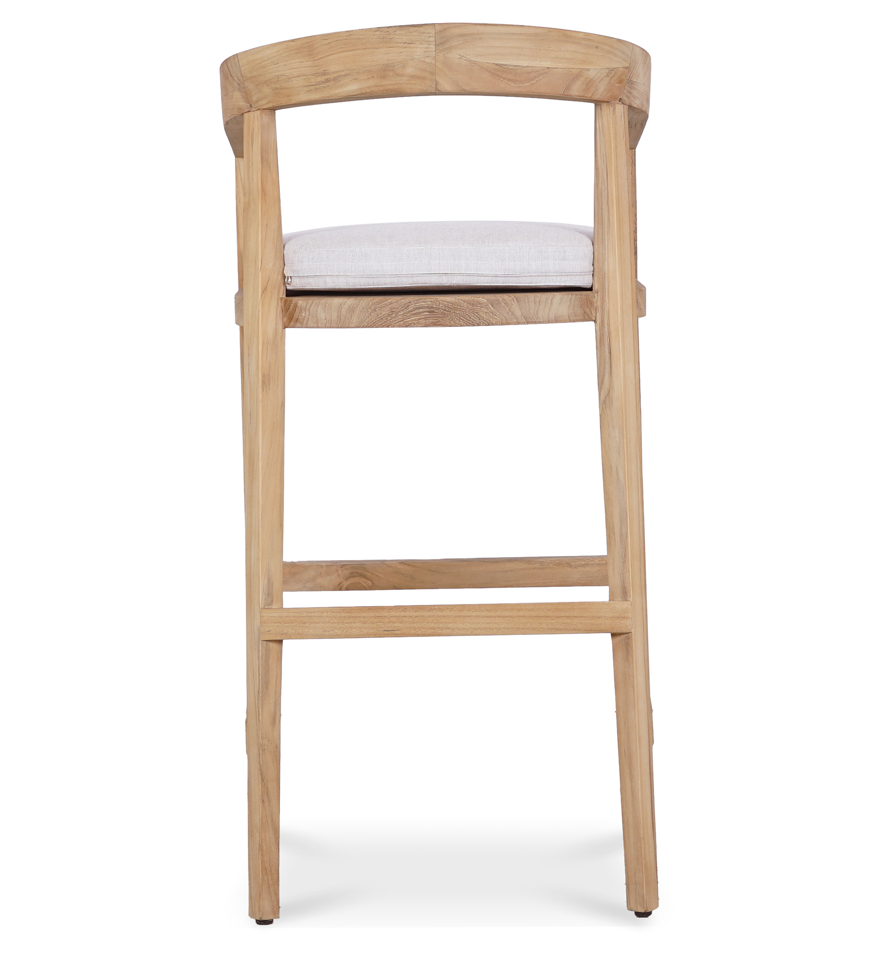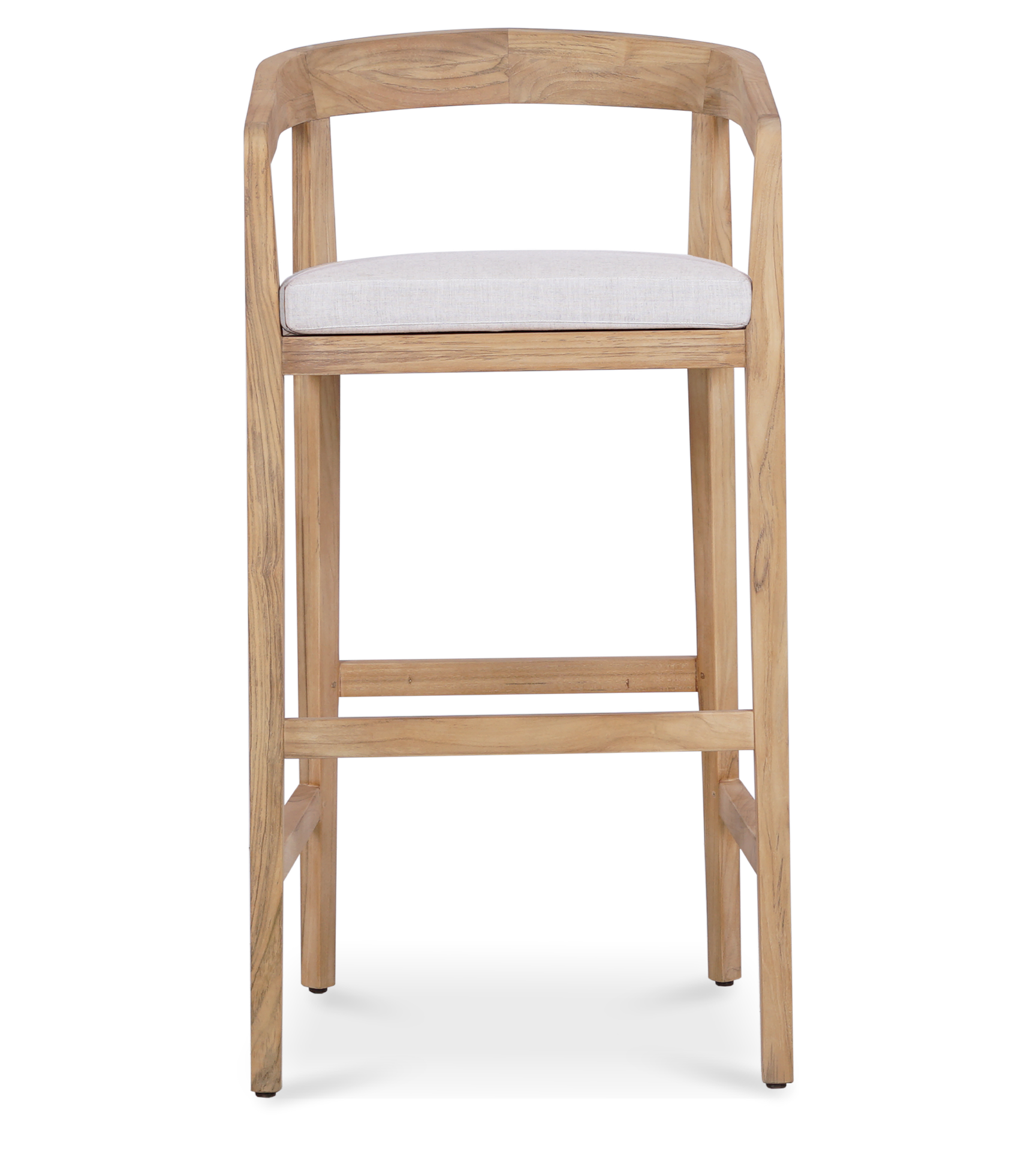 The padded seat cushion adds softness where it counts and can be upholstered in your choice of outdoor-friendly fabric. Whether you're lining them up at a breakfast bench or scattering them across a rooftop bar, these stools bring a touch of considered elegance to every setting. Minimalist, functional, and always ready for another round.