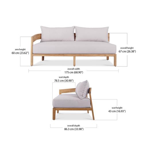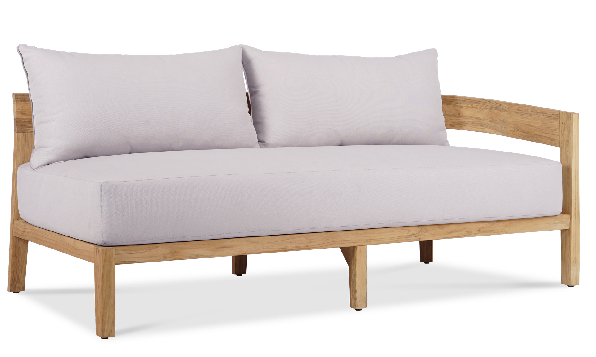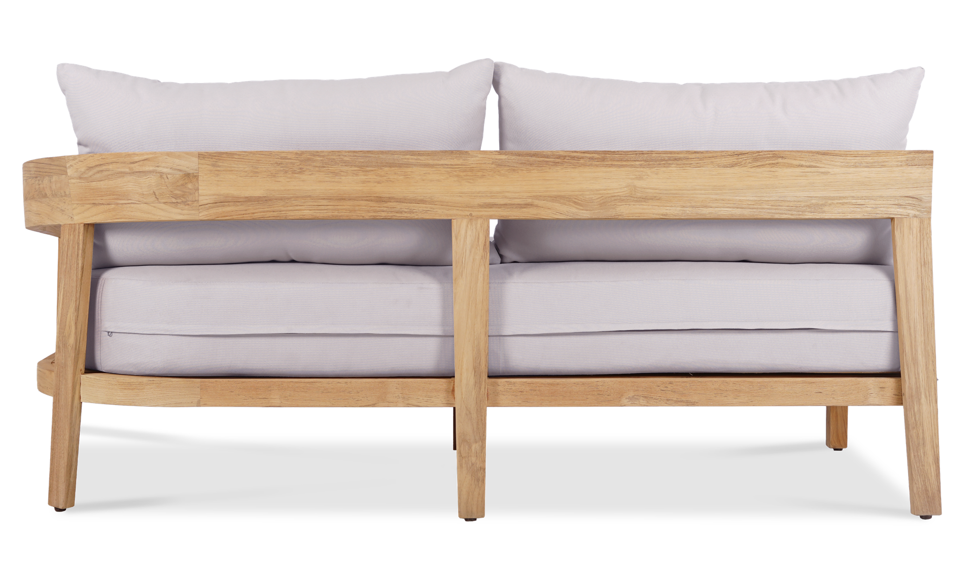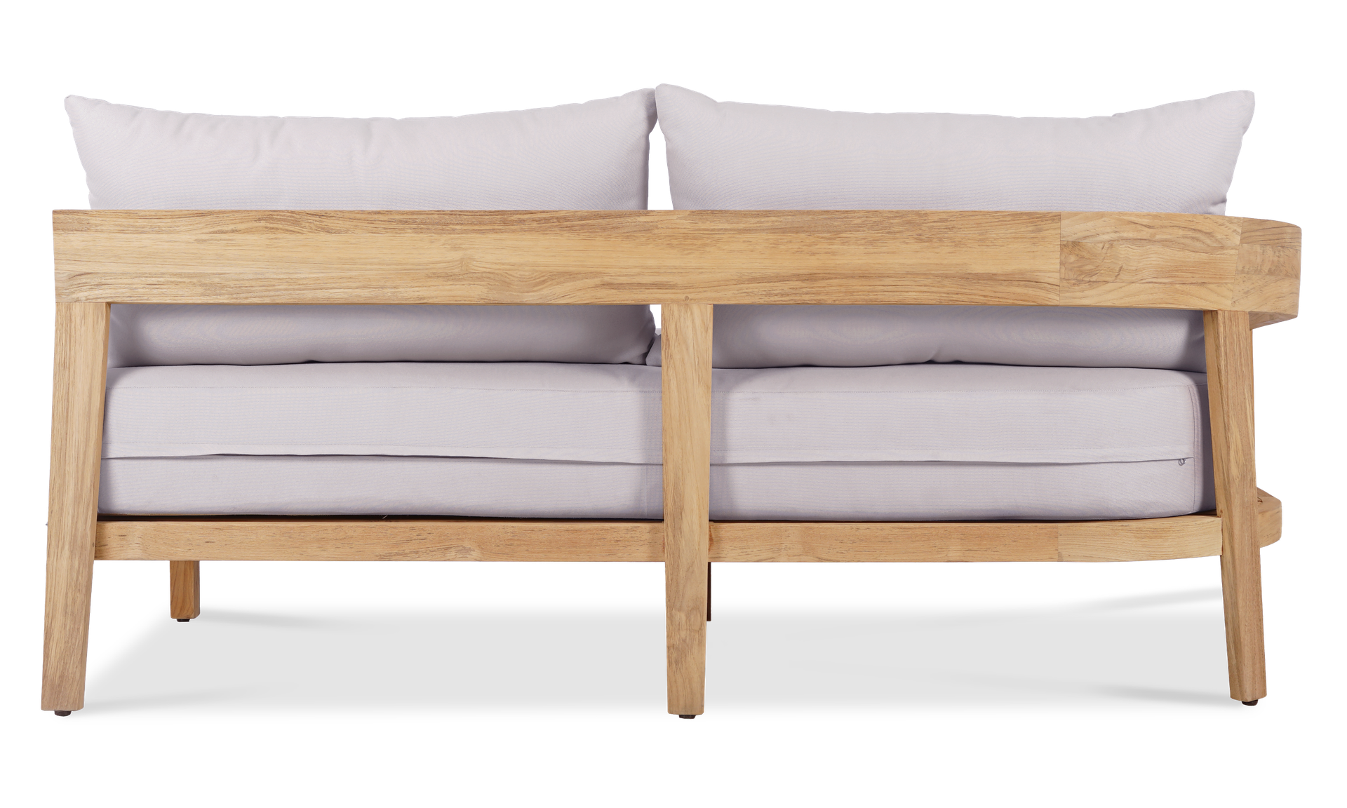 Crafted from solid teak, each piece brings gentle curves and seamless joinery into focus, offering understated elegance with serious staying power. The plush, oversized cushions are upholstered in durable outdoor fabric, and their covers are removable for easy cleaning. A quick-change connector system and weather-resistant sling base make this sofa as practical as it is comfortable.