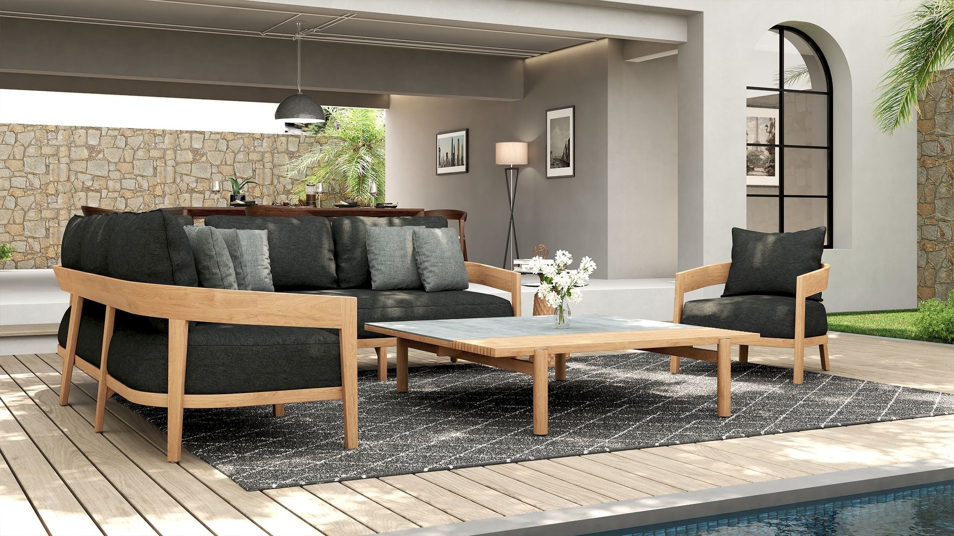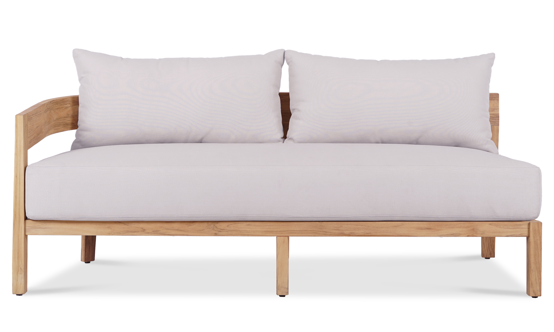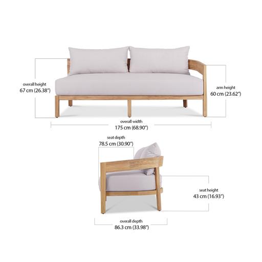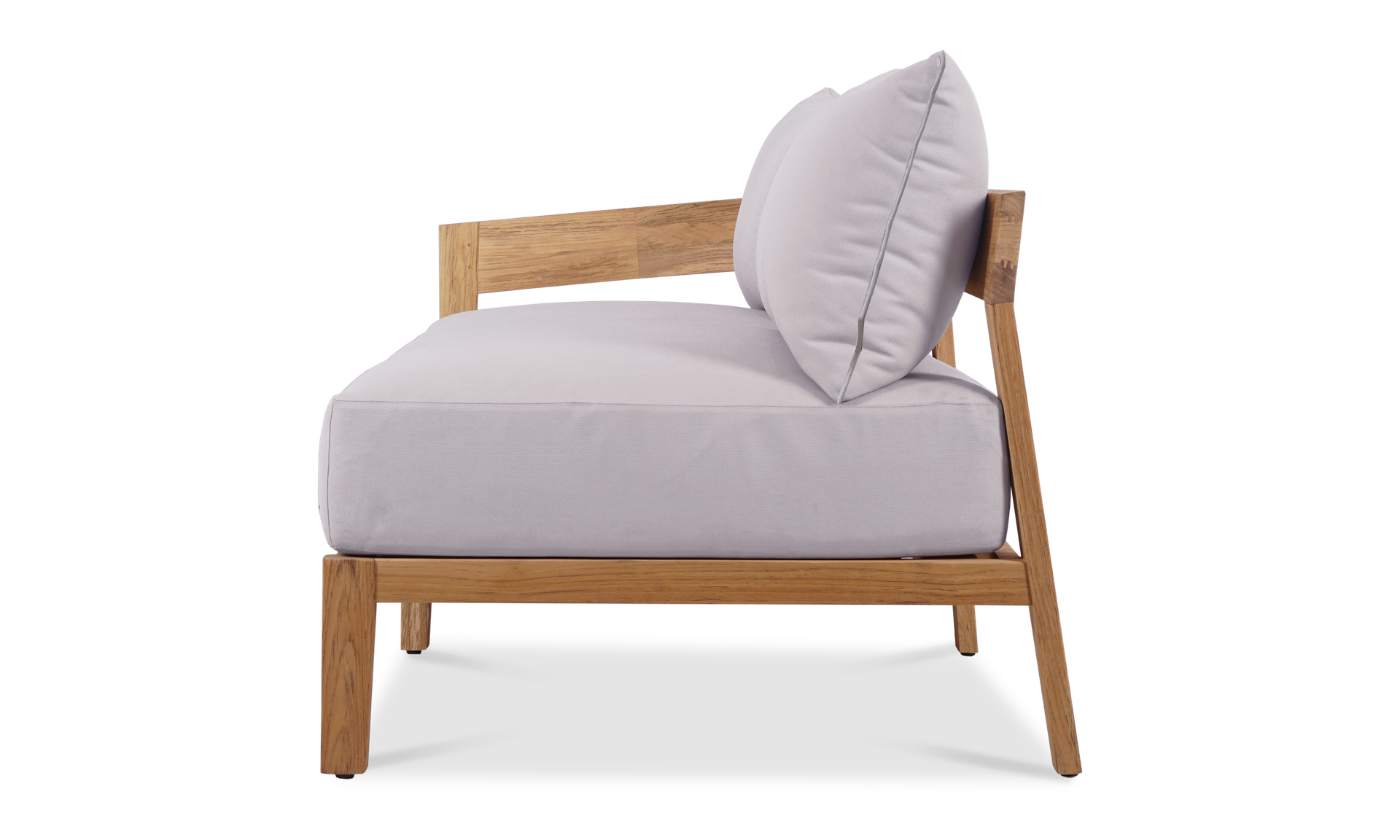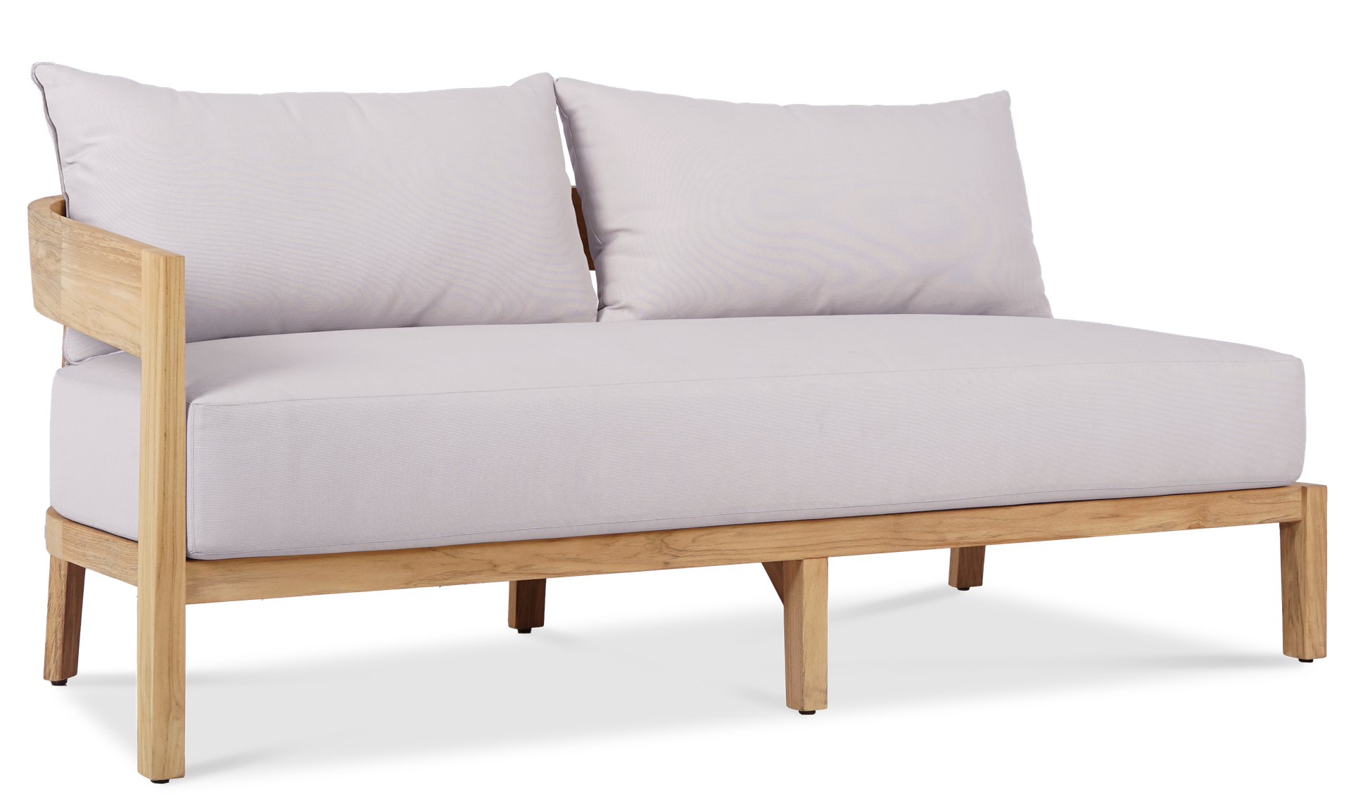 Crafted from solid teak, each piece brings gentle curves and seamless joinery into focus, offering understated elegance with serious staying power. The plush, oversized cushions are upholstered in durable outdoor fabric, and their covers are removable for easy cleaning. A quick-change connector system and weather-resistant sling base make this sofa as practical as it is comfortable.