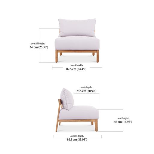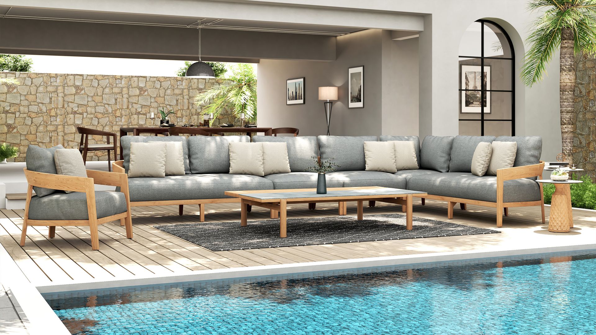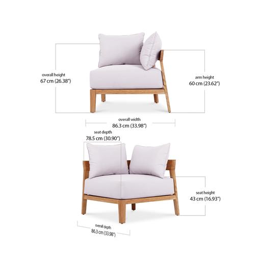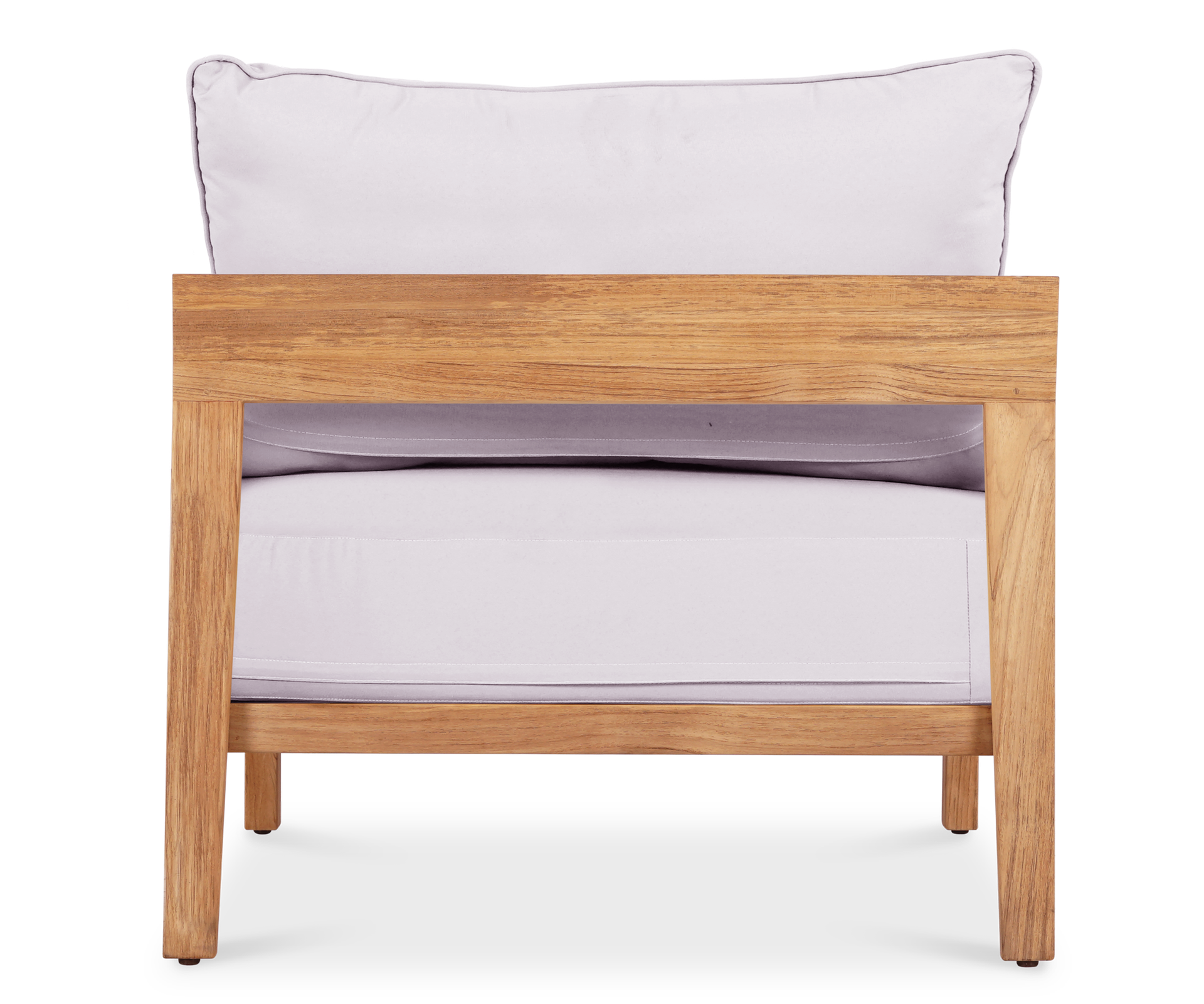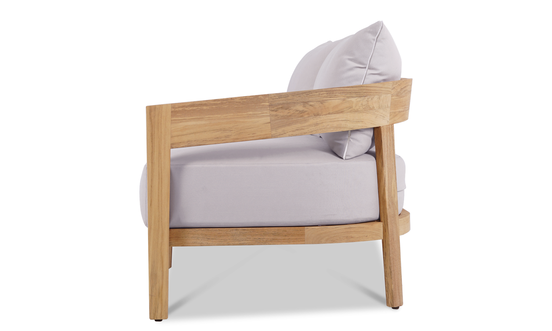 Crafted from solid teak, each piece brings gentle curves and seamless joinery into focus, offering understated elegance with serious staying power. The plush, oversized cushions are upholstered in durable outdoor fabric, and their covers are removable for easy cleaning. A quick-change connector system and weather-resistant sling base make this sofa as practical as it is comfortable.