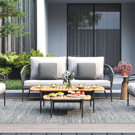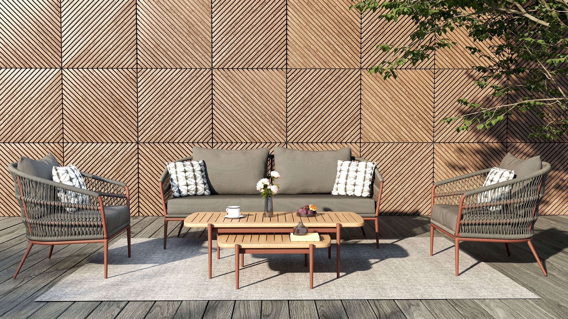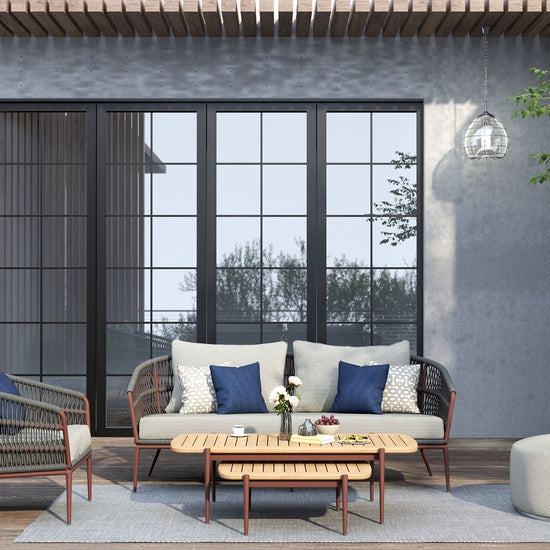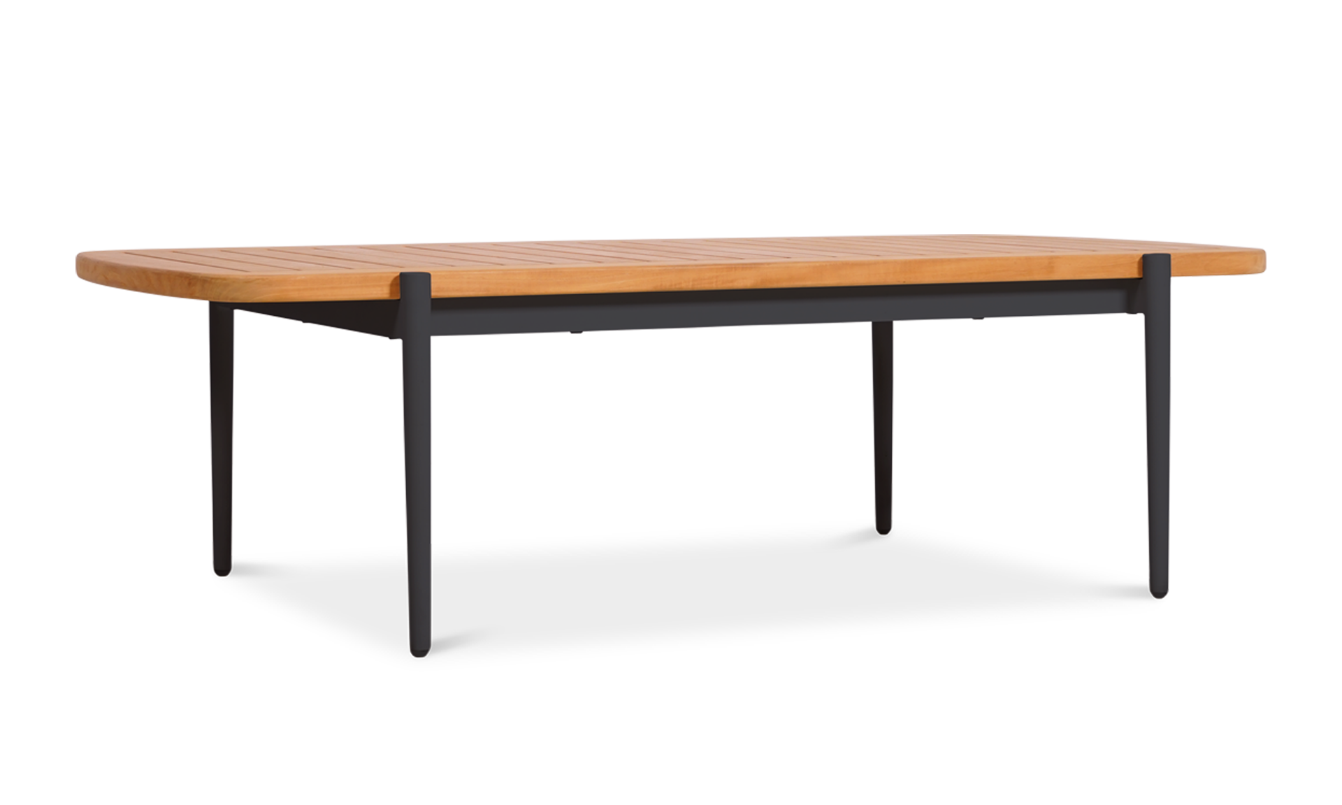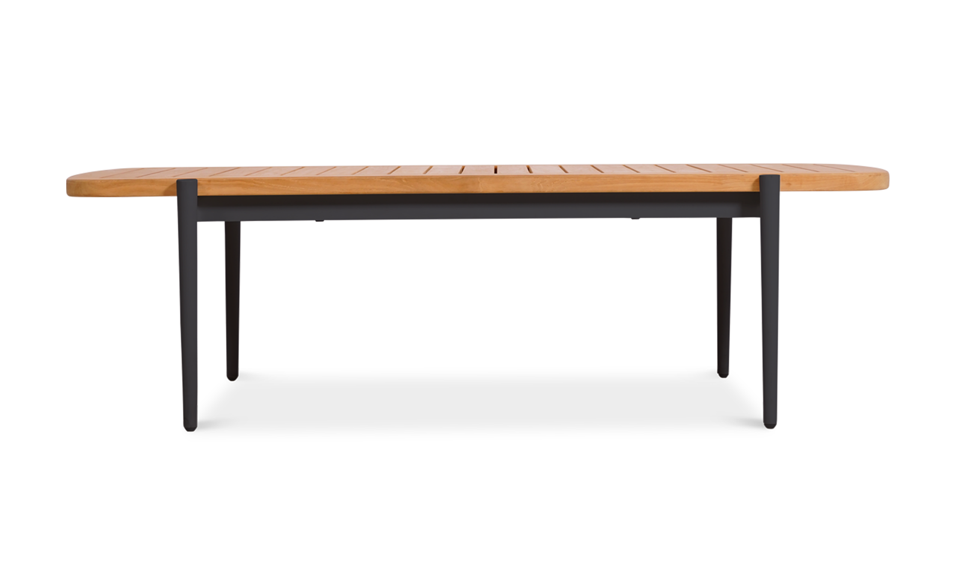 Clean lines and clever construction define the vino coffee table. Crafted with a powder-coated aluminium frame and topped with a slatted teak surface, this piece is made to handle the elements with style. The open slat design allows rainwater to pass through, helping to keep things dry and practical outdoors. Its relaxed low height makes it the perfect partner for lounging, while the matching nesting table adds versatility to your setup.